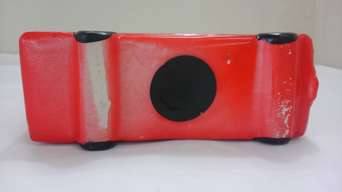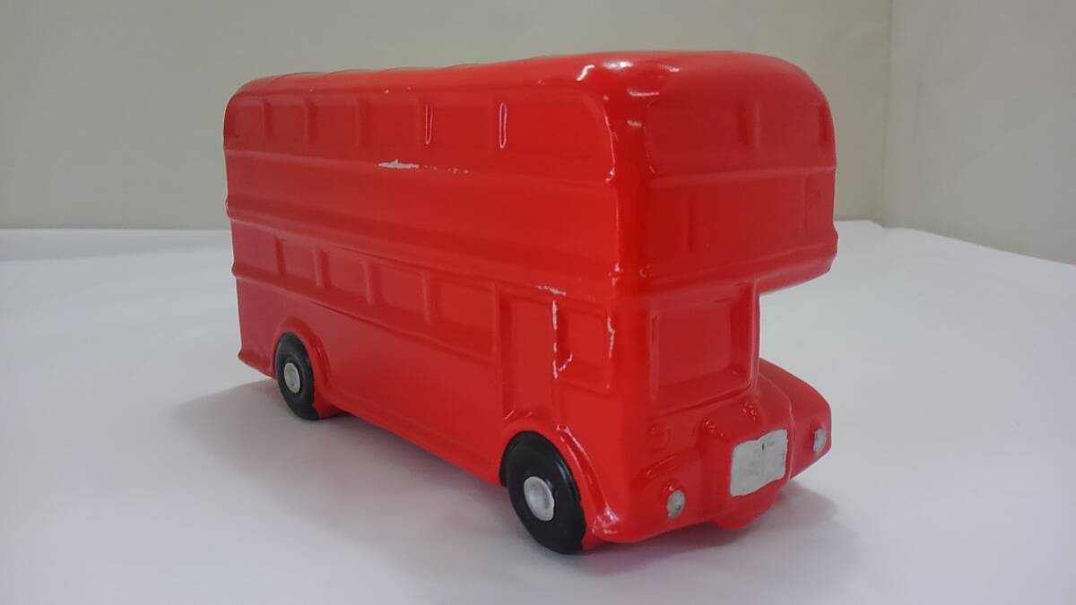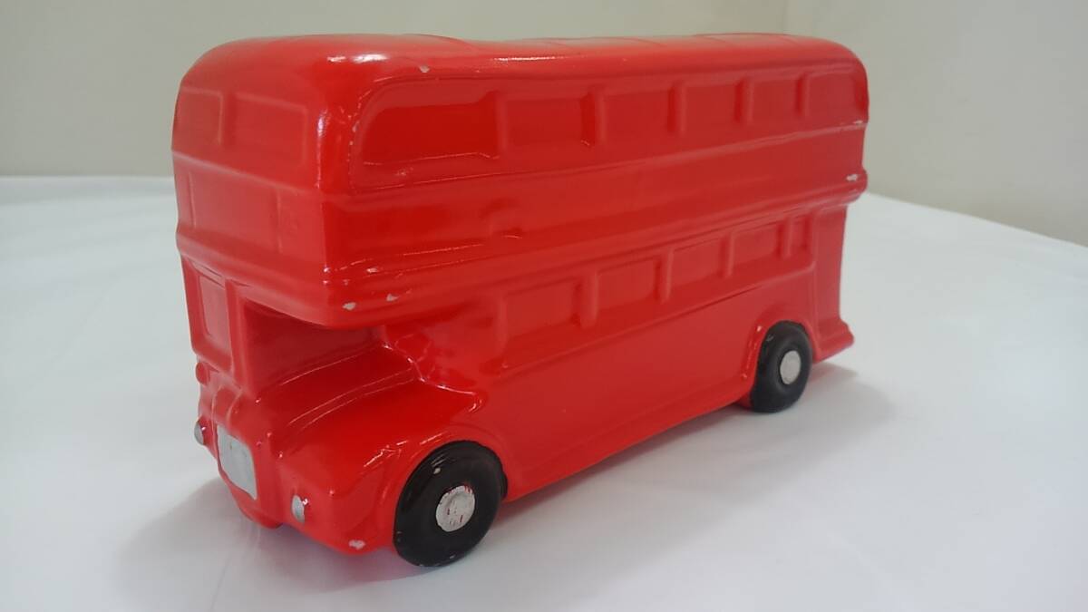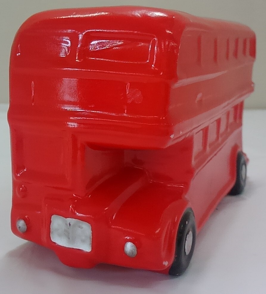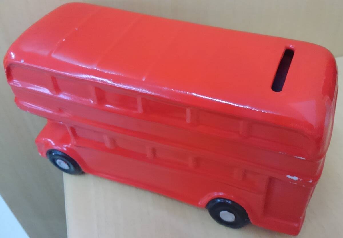 【菊水-545】★レトロ★■2階建てバス型 貯金箱■陶器製/赤 /インテリア/アンティーク(IS) |