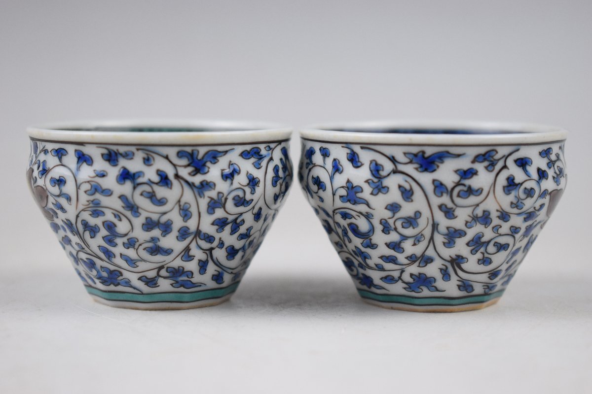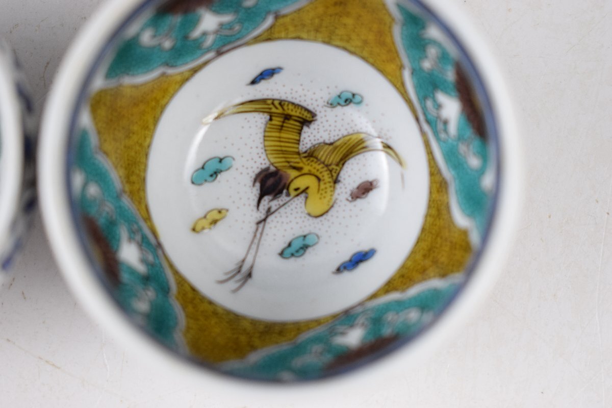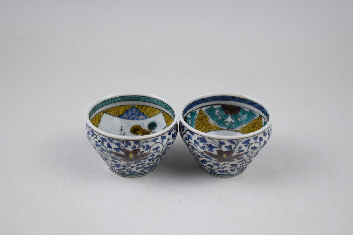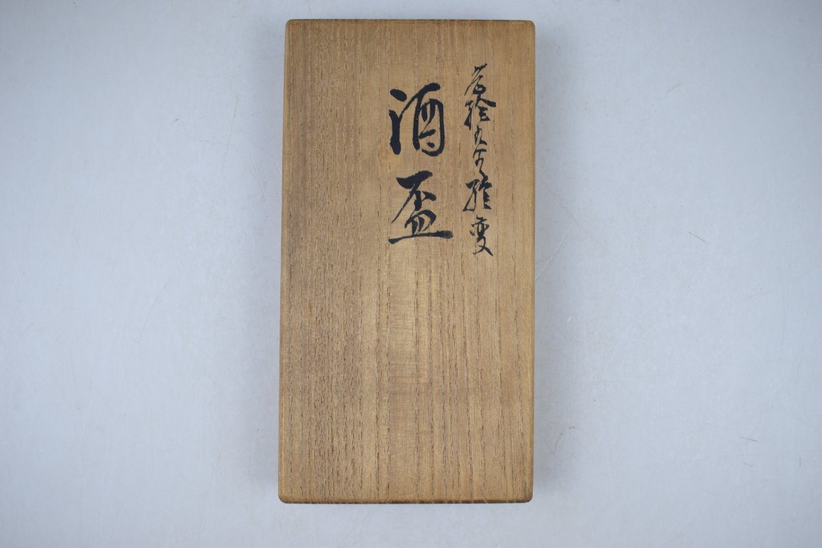 【宮本忠夫 九谷焼 細密画 色絵九谷絵変酒盃 鶴亀図 二客揃 共箱 真作保証】