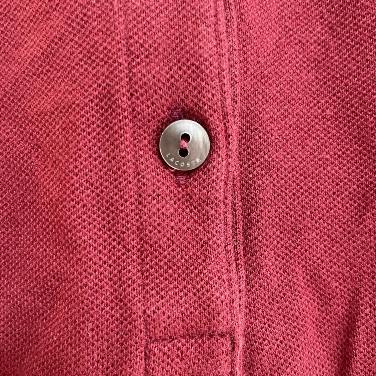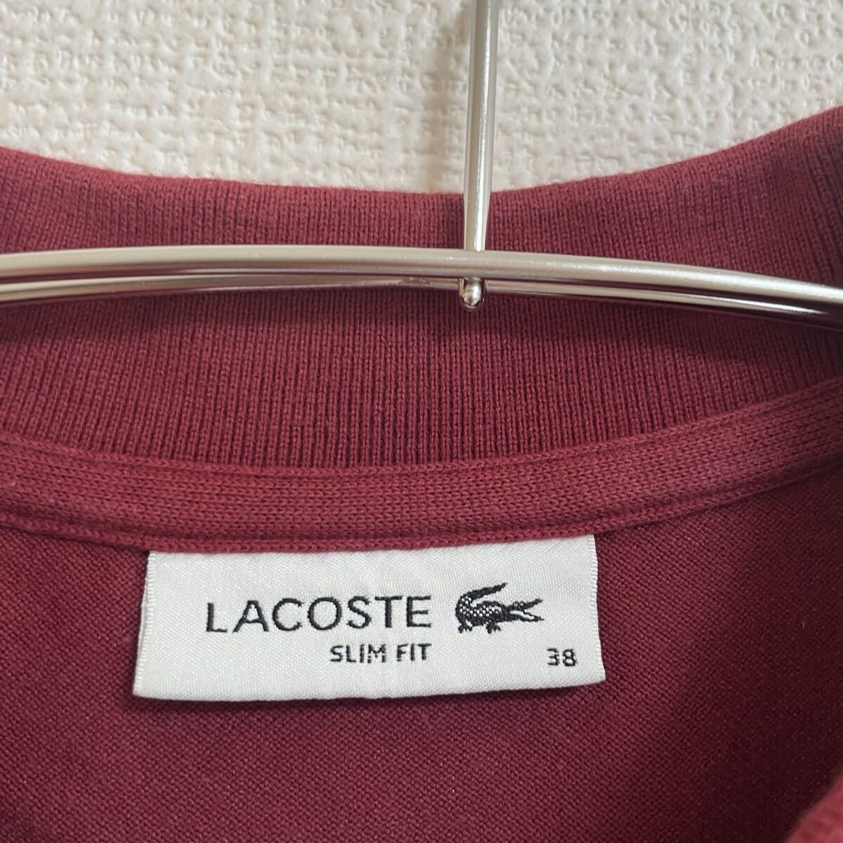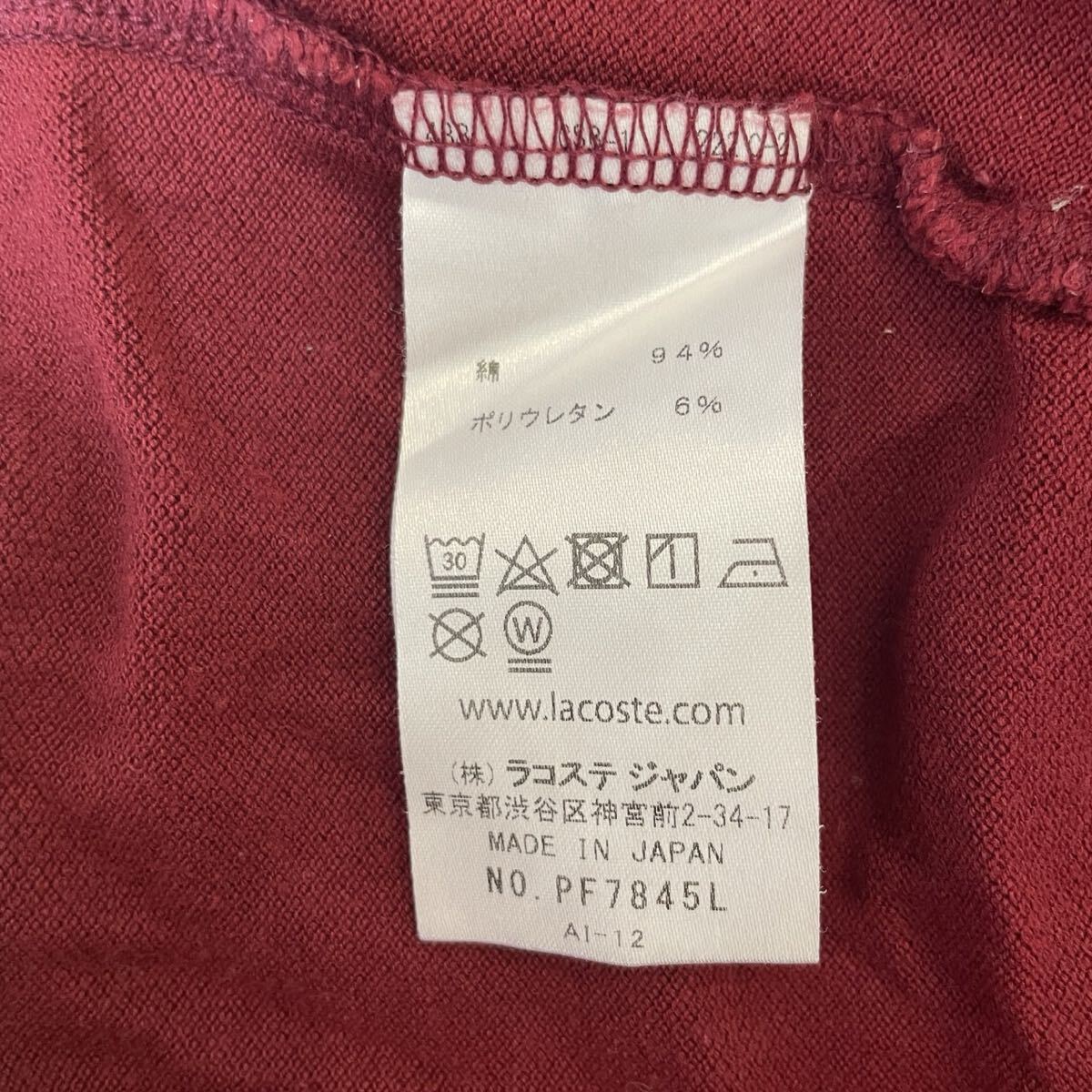 胸元に定番のワニ刺繍ロゴ入り、赤〜ボルドー系のカラーが上品で大人っぽい雰囲気です。スリムフィットデザイン、日本製ならではの高品質な一着です。