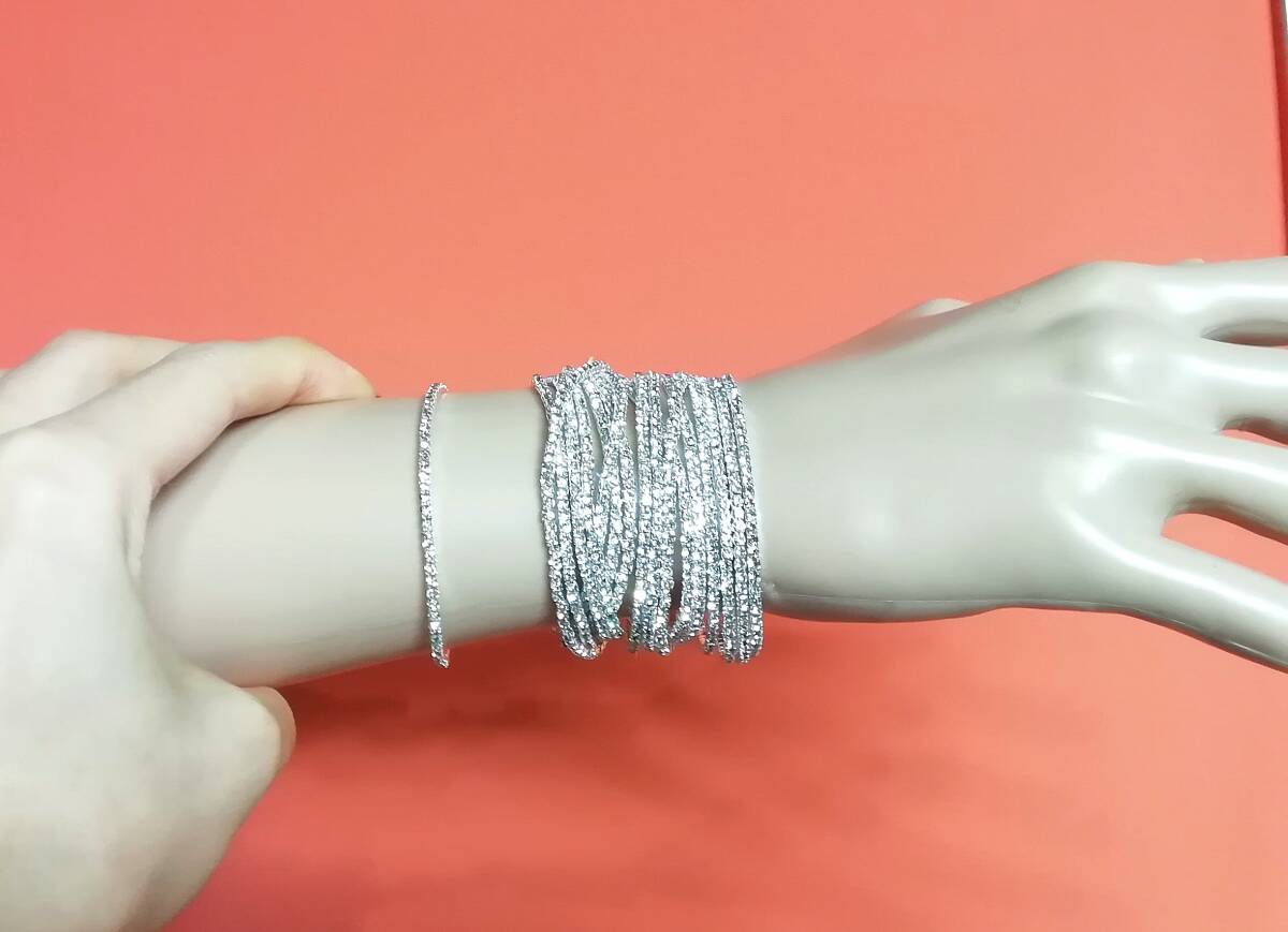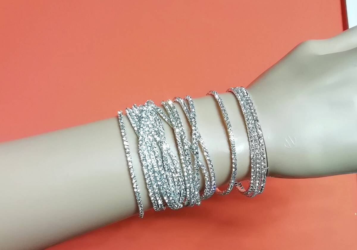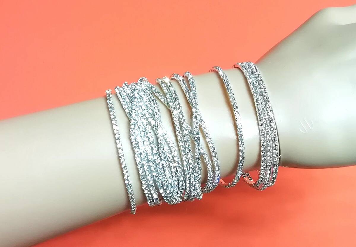 16連 新品 華奢 細め クリアラインストーン ブレスレット 重ね付け キラキラ バングル