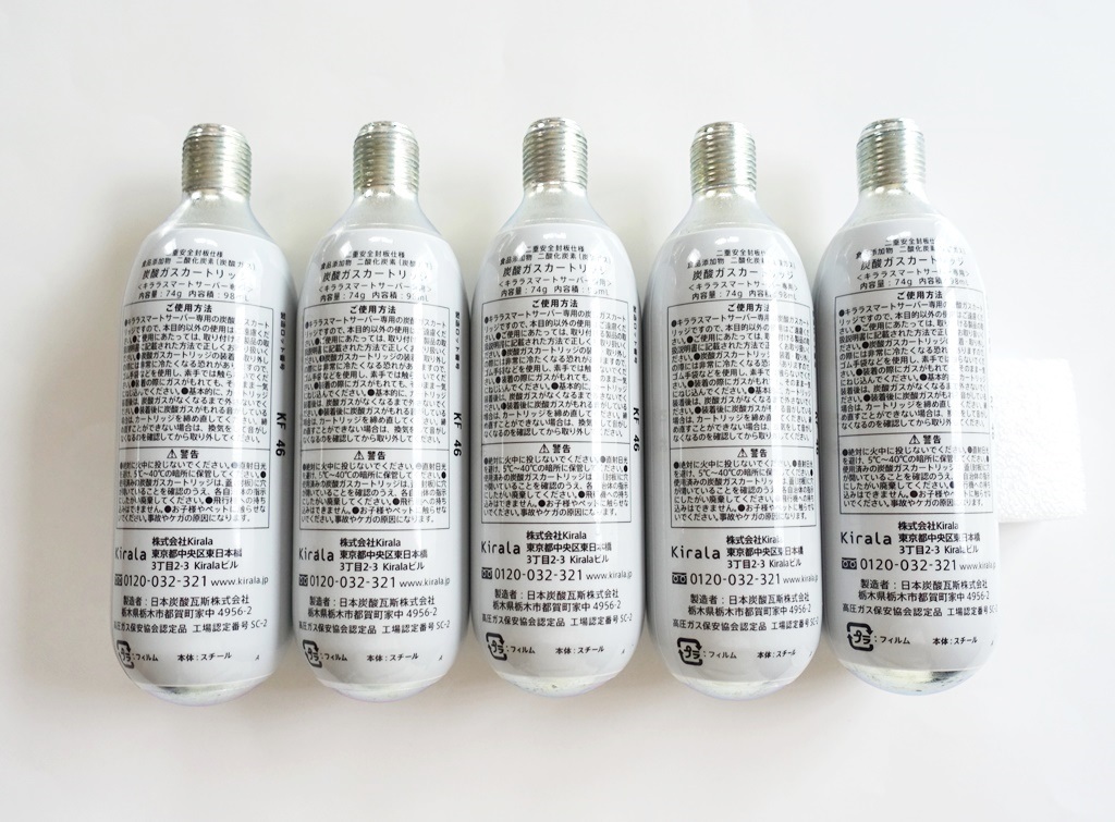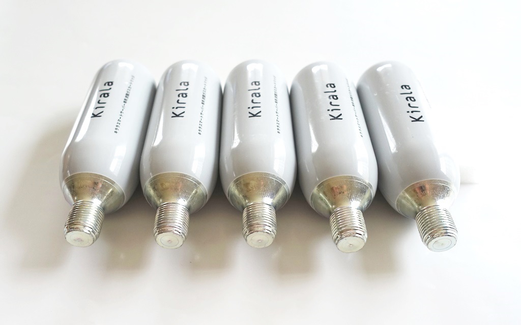 ☆新品☆Kirala 炭酸ガスカートリッジ 74g×5本セット キララ 炭酸ガス 内容量74g/98ml ※ミニガス ビールサーバーにご使用可能-①
