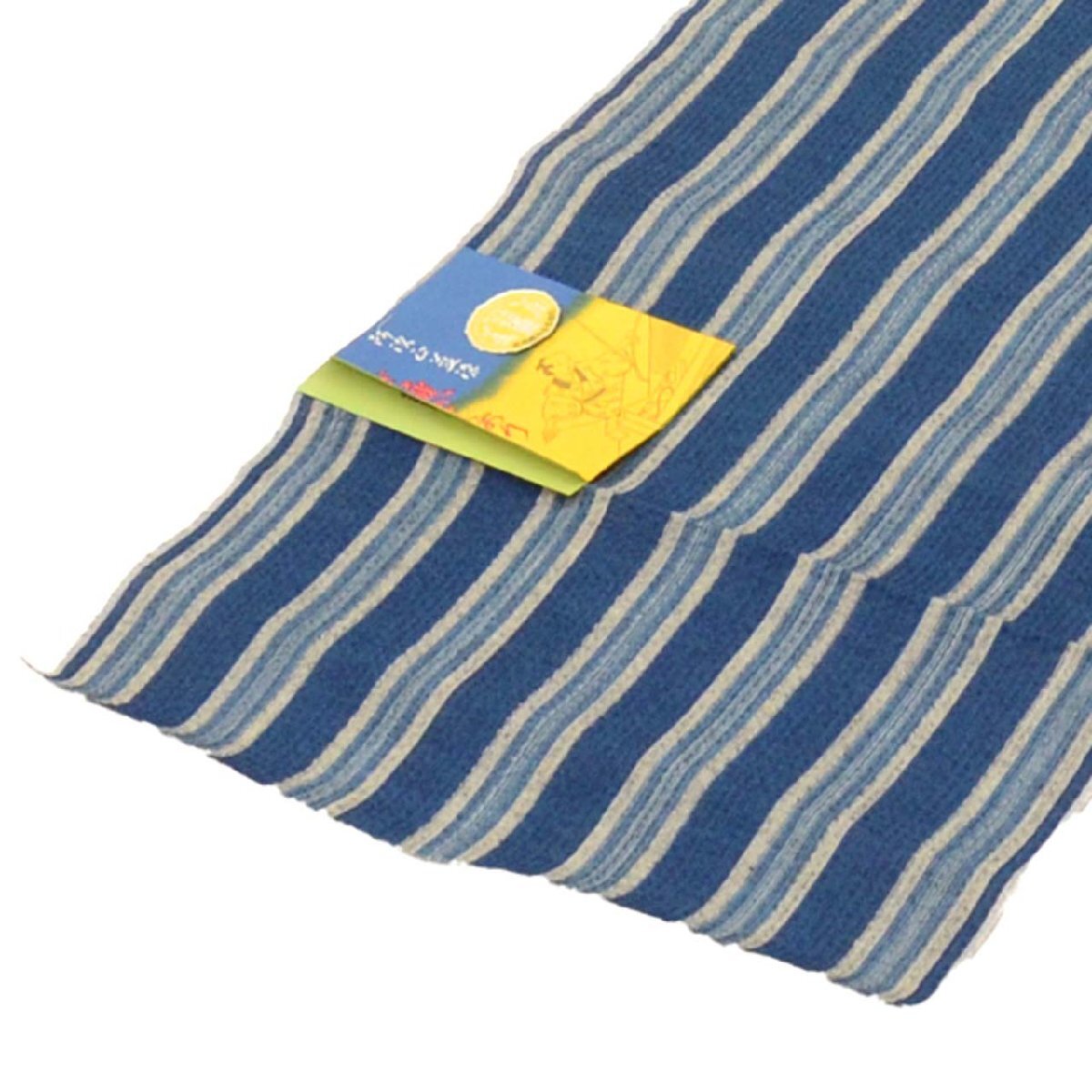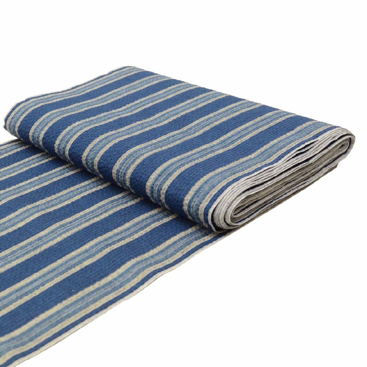 紺や青色に縞文様が施された、女物の小紋のリサイクル反物です。