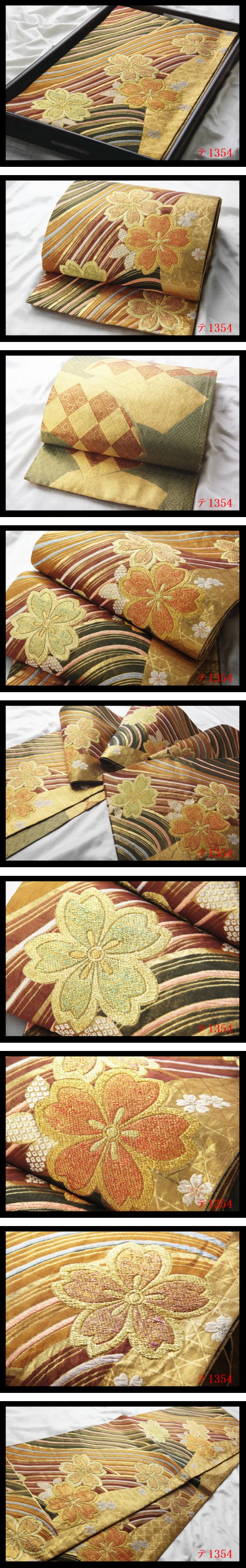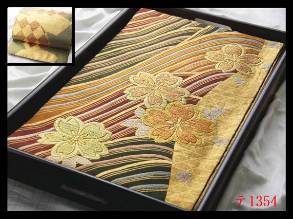 蔵【テ1354】西陣逸品 振袖可 桜散らし紋 華やぎの品格 正絹純金糸両面六通高級美術袋帯 ◇検◇簪着物名古屋帯和装小物帯締め