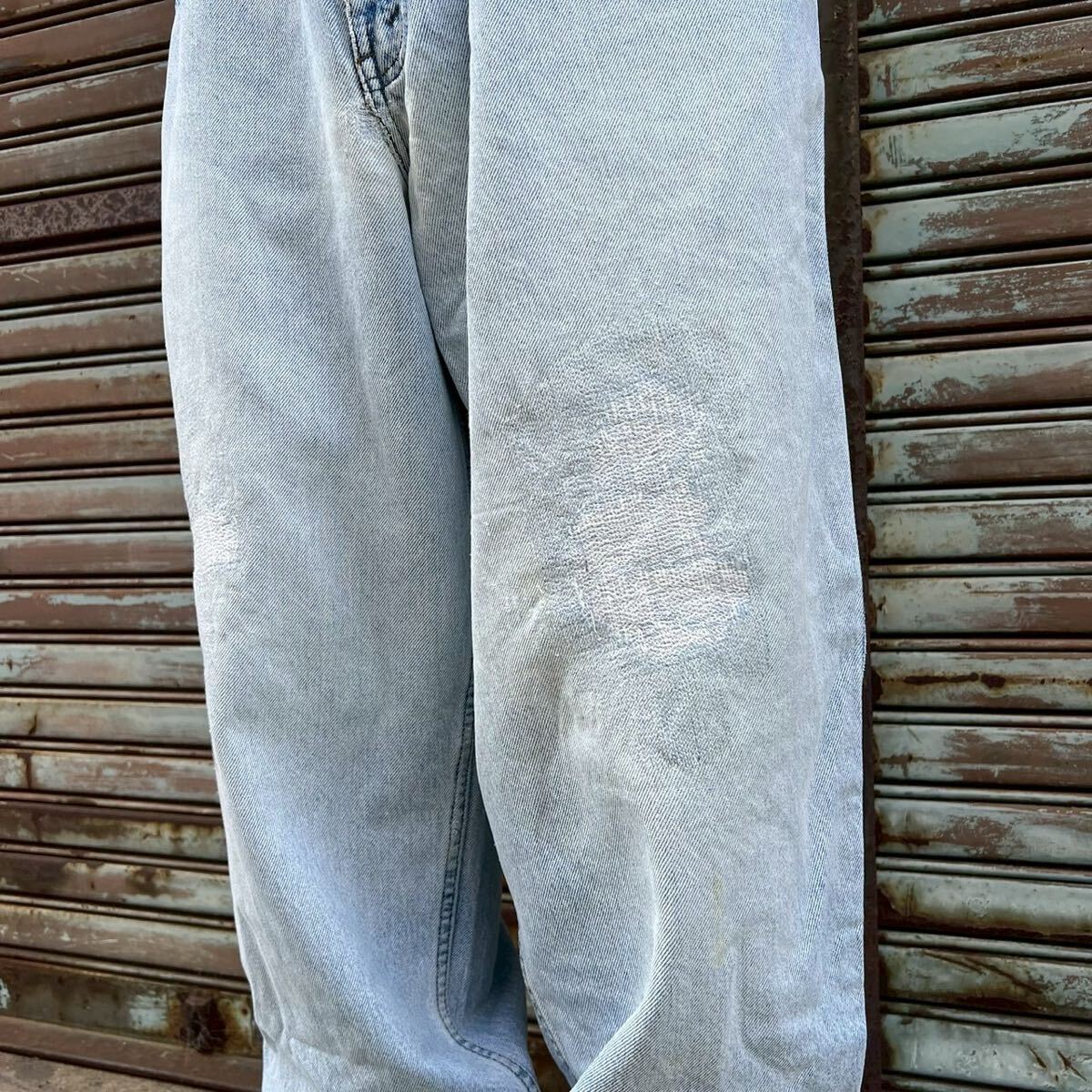 コンディション : 裾にダメージ、腿に汚れがございます。腿、膝、股下にリペアがございますが、着用に問題あるダメージはございません。