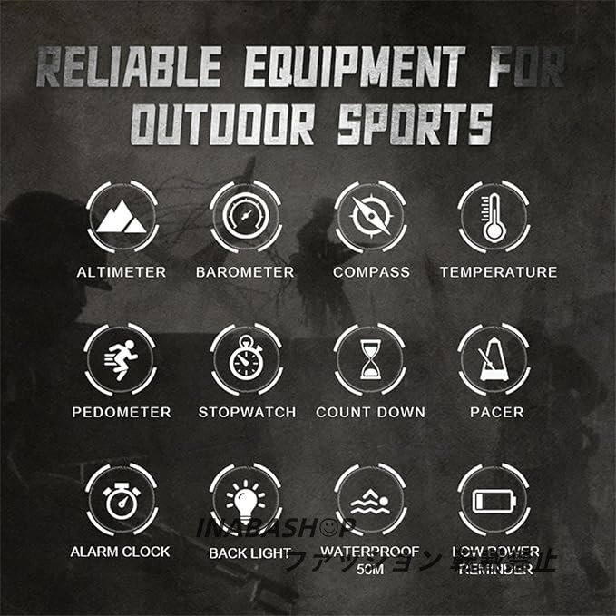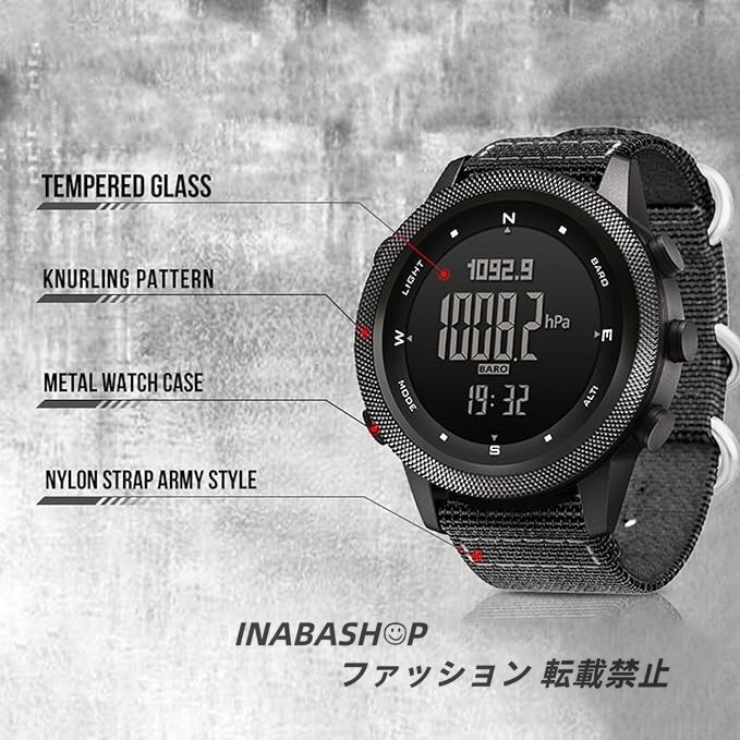 多機能デジタル腕時計メンズアウトドアスポーツランニング水泳アウトドアスポーツ腕時計高度計気圧計コンパス防水