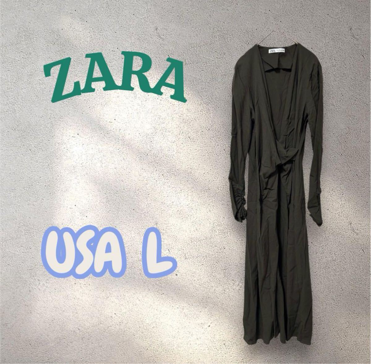 ダークグリーンのラップスタイルドレス、USA Lサイズ。