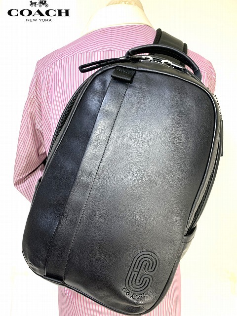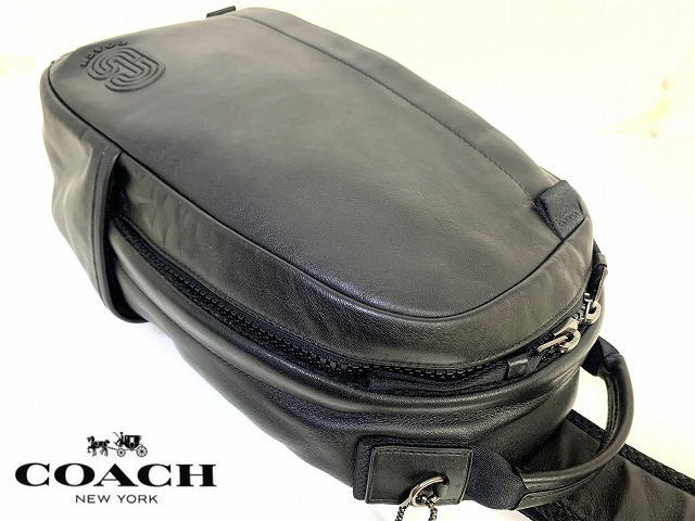 極美品★送料無料★ コーチ メンズ COACH レザー エッジ パック ボディバッグ ショルダー ブラック