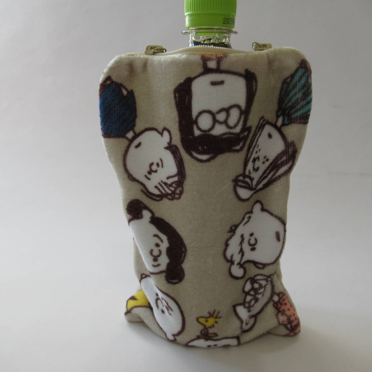 (写真は、600mlのペットボトルを入れた状態) スヌーピーとチャーリー・ブラウンの表情が可愛らしいデザインです。ペットボトルなど出し入れがしやすく、使い方はいろいろ。内側はパイル地になっています。500mlのペットボトル(写真は、600mlのペットボトルを入れた状態)が入る縦型サイズ。結露が気になる飲み物や、歯ブラシセットやマスクケースなど様々な用途でお使いいただけます。タオル素材で手触りが良く、丸洗い出来ます。使用後畳んで小さくなるのも便利です。