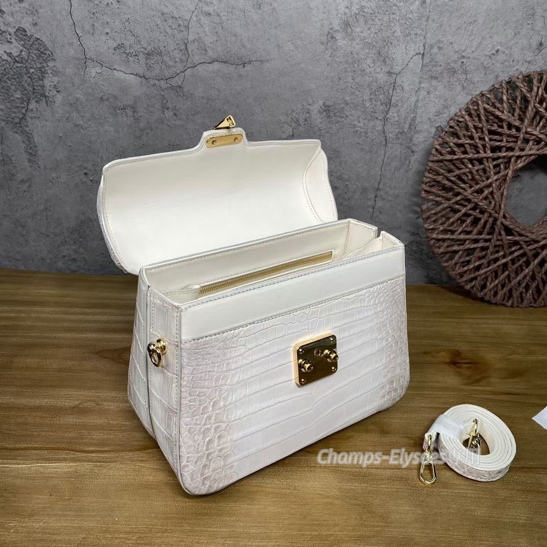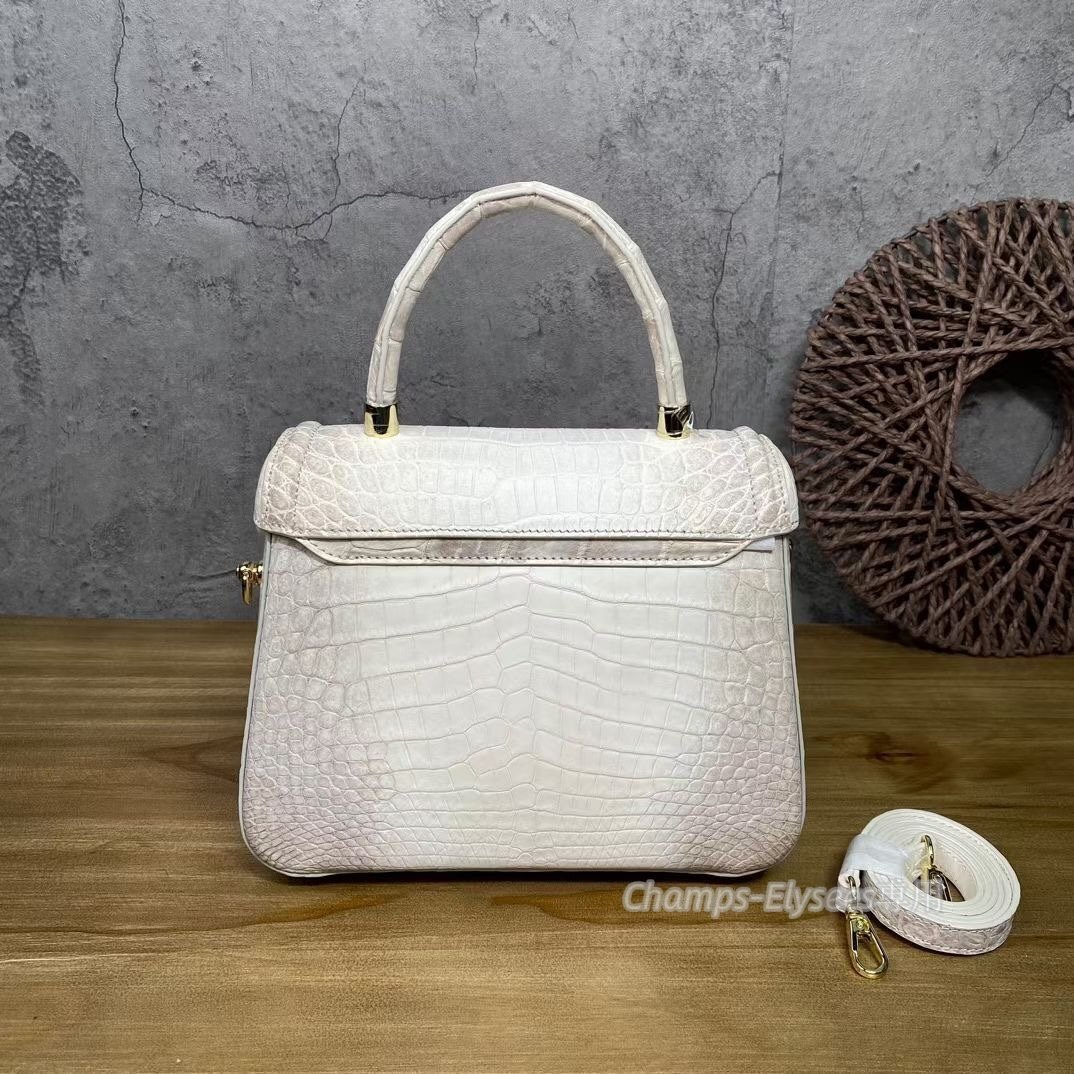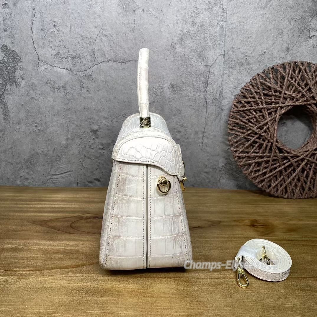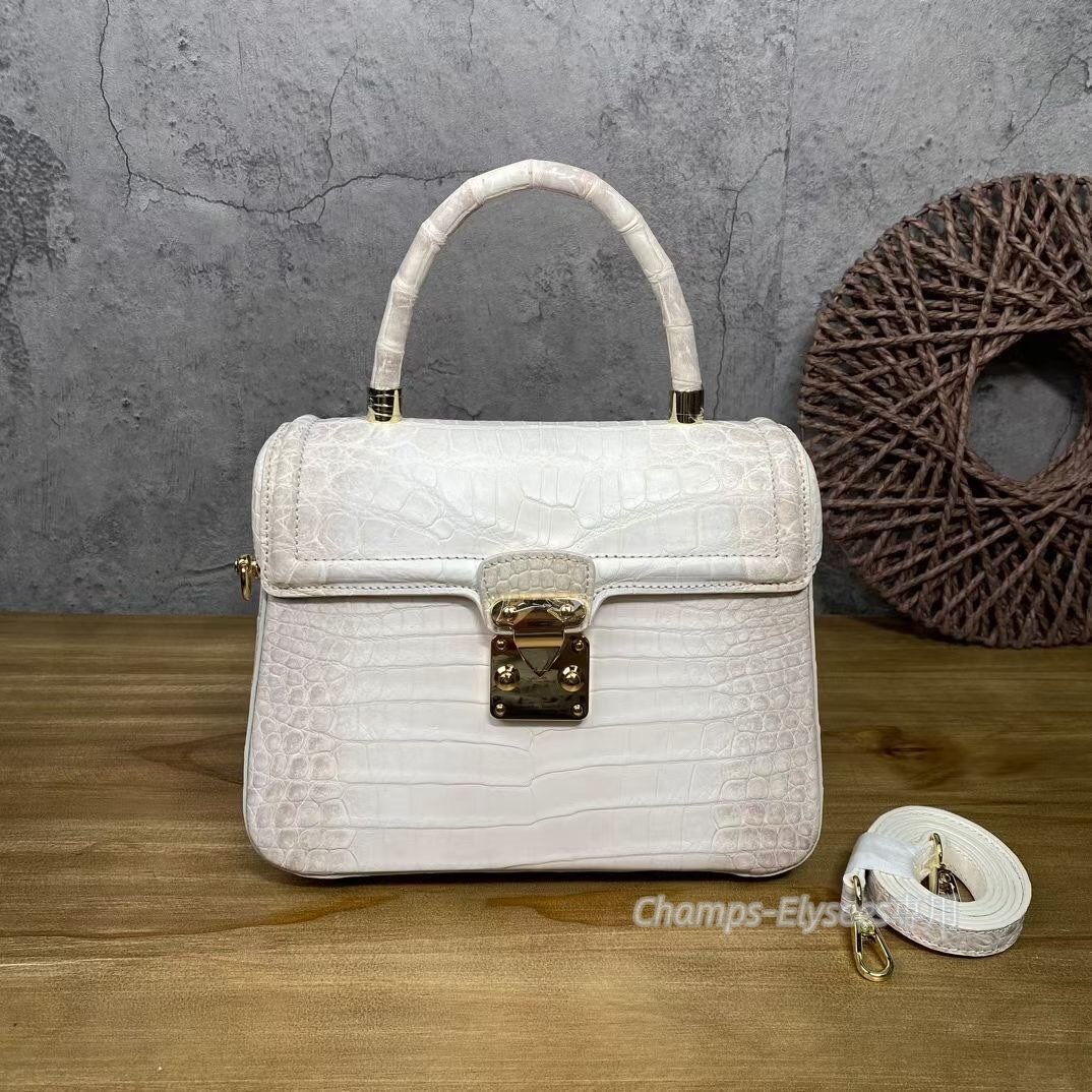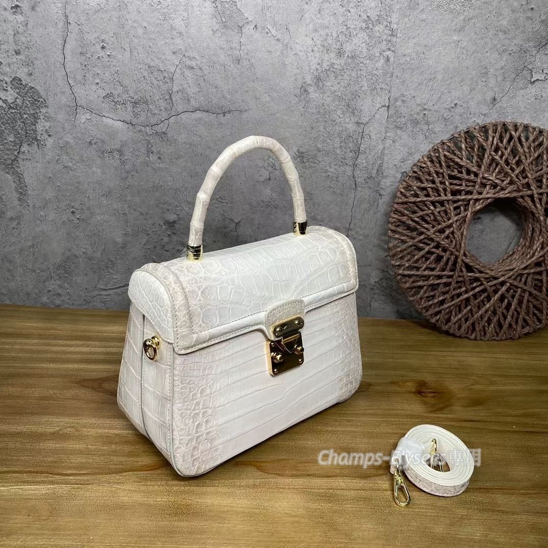 鰐革 腹革センター取り ヒマラヤクロコダイルレザー 手提げ レディースバッグ ハンドバッグ