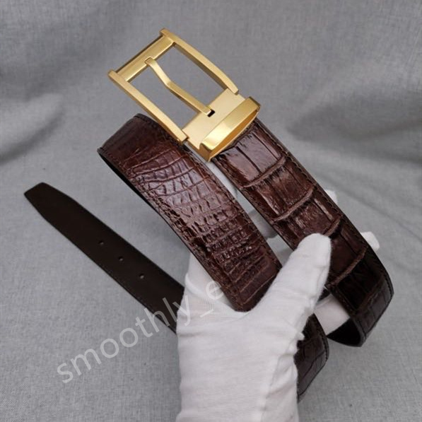 実用性抜群 革ベルト 男女兼用ベルト 本物鰐革 腹革 一枚革 高級志向 メンズ革ベルト クロコダイルレザー ピン式ベルト ブラウン