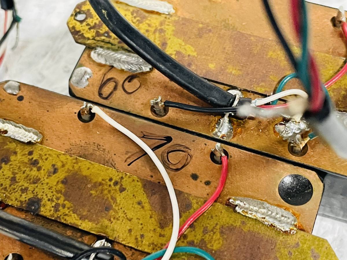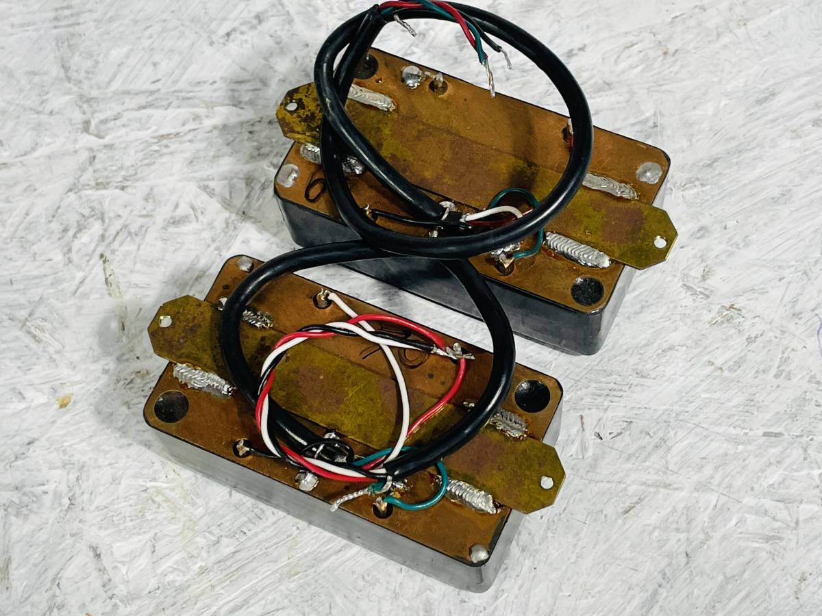 詳細不明です。パッシブハムバッカー2個セット。底面に60、70の表記があります。直流抵抗値は60が約12.0kΩ、70が約17.5kΩ。リード線は約20cm、約15cm。