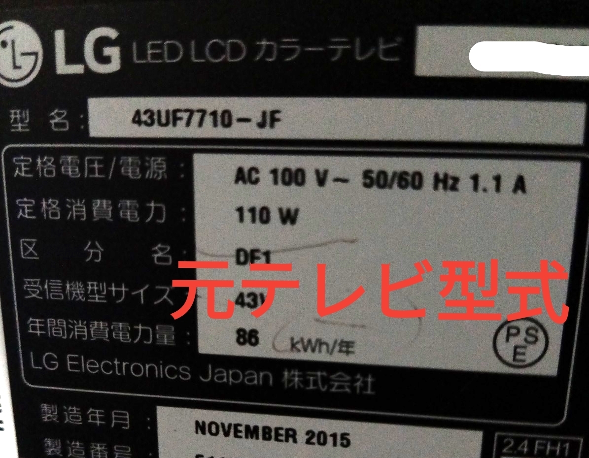 LG 43V型 液晶 テレビ4K 43UF7710−JF から外した部品
