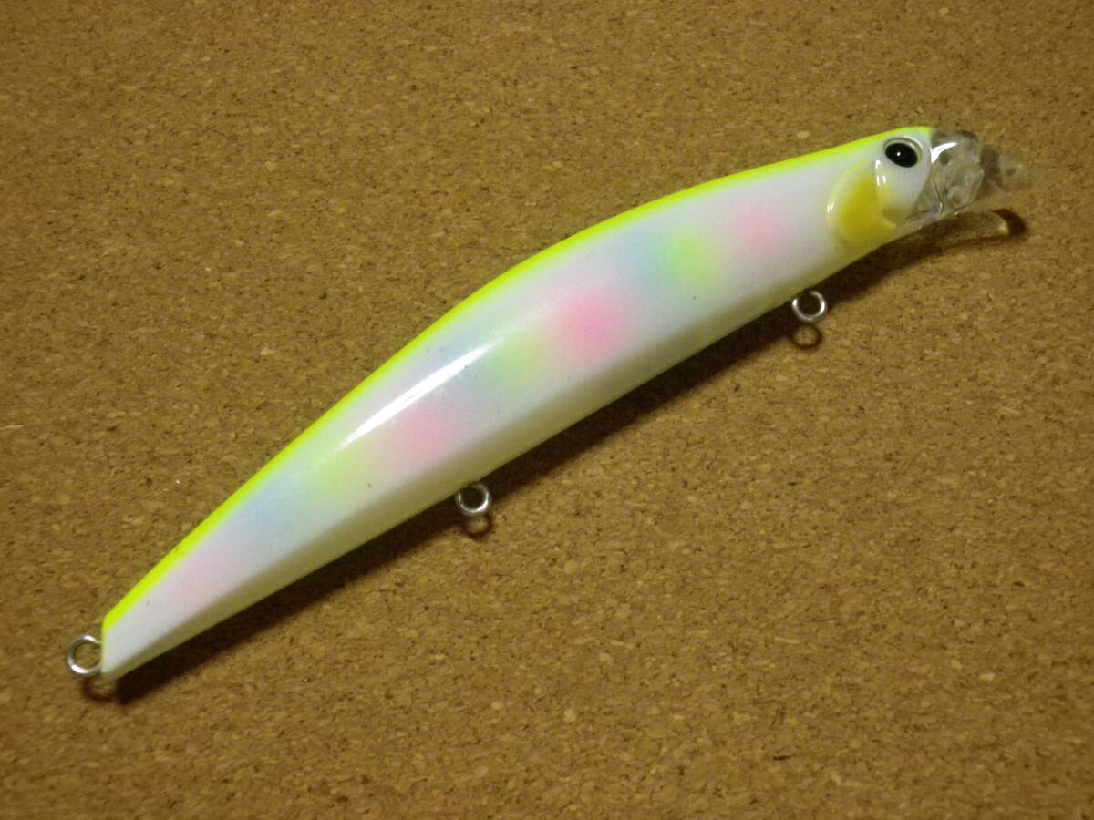 ZXZのM108-Sです。108mm、16g、シンキング。●タングステンウエイト内臓。カッ飛び系シーバス・ヒラメ用ミノー。