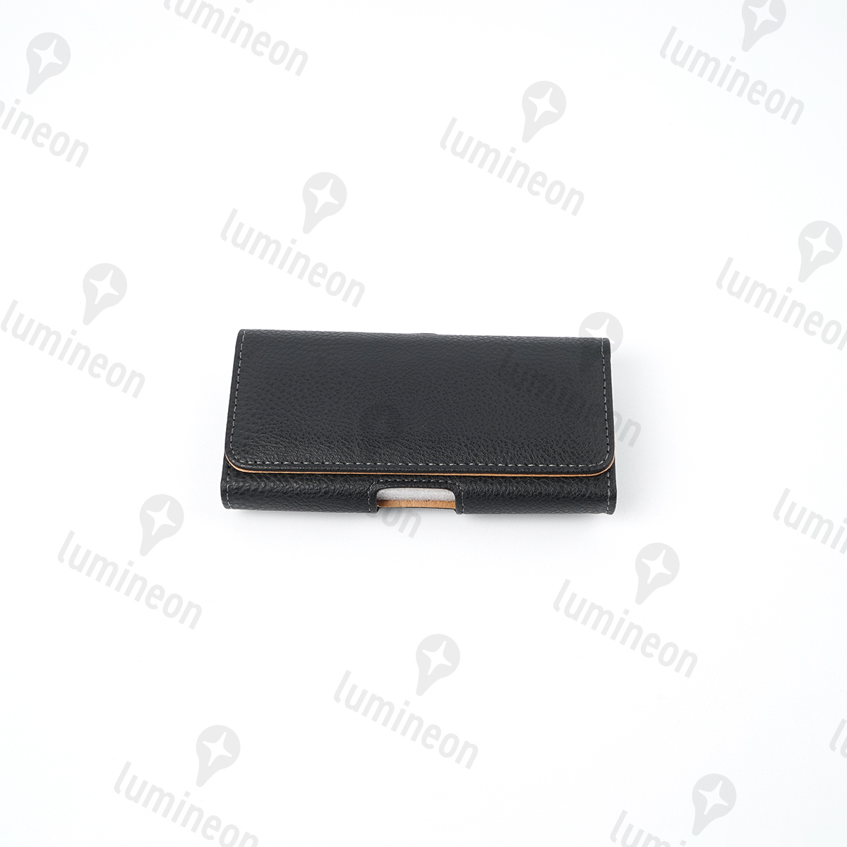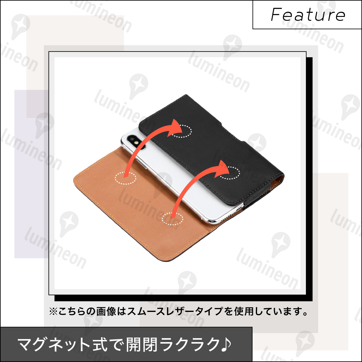 ■クリップとスナップボタンのダブルで安心の横型スマホポーチです。