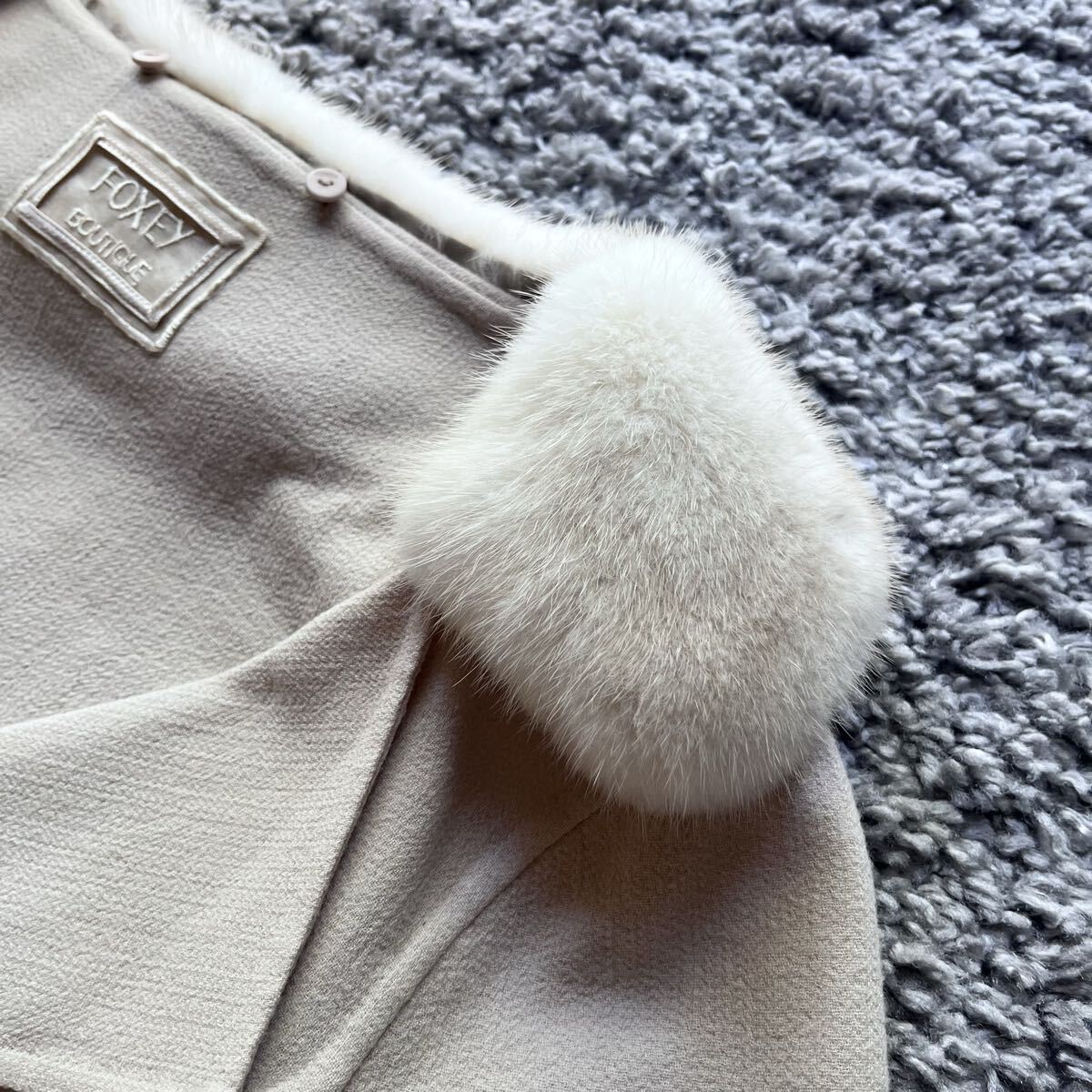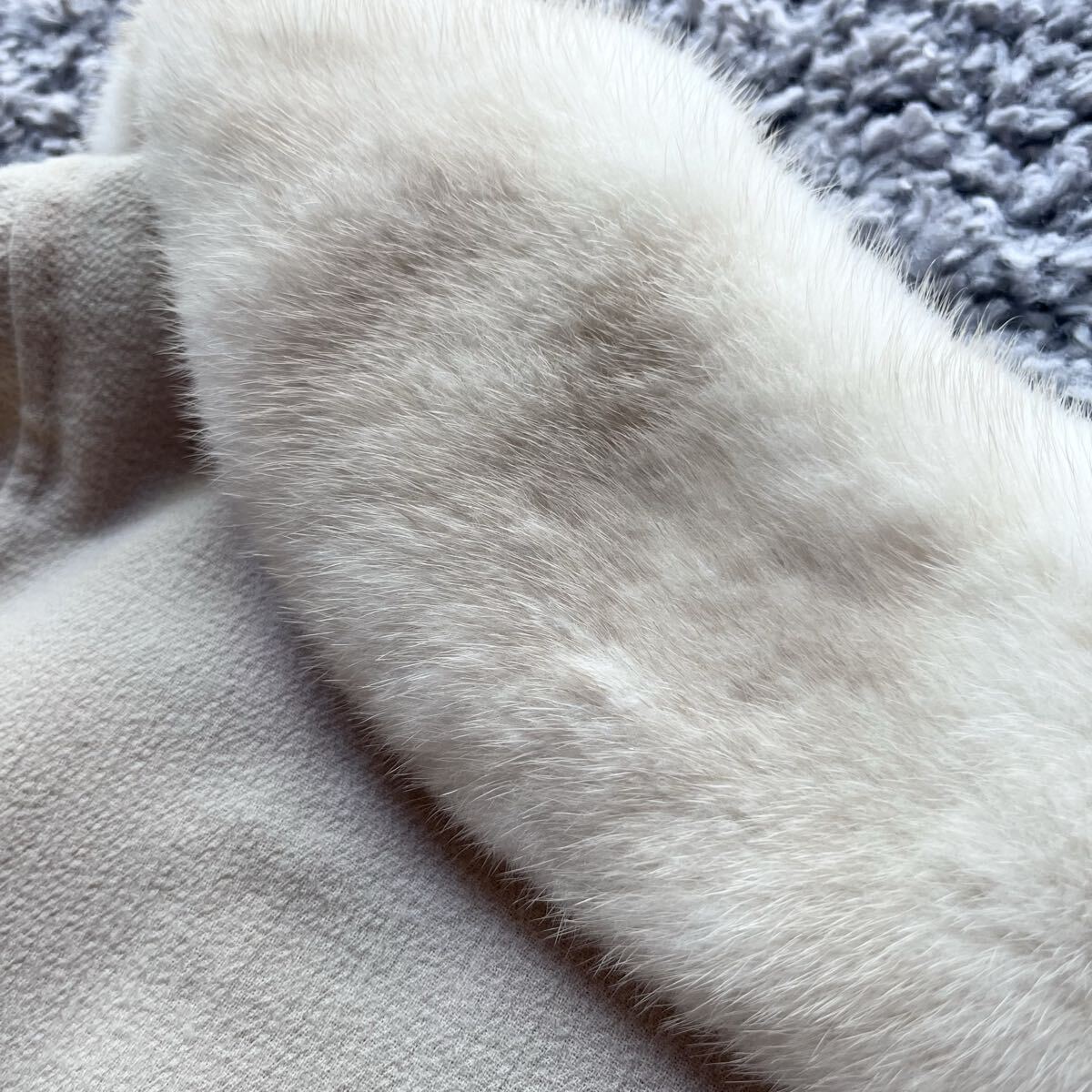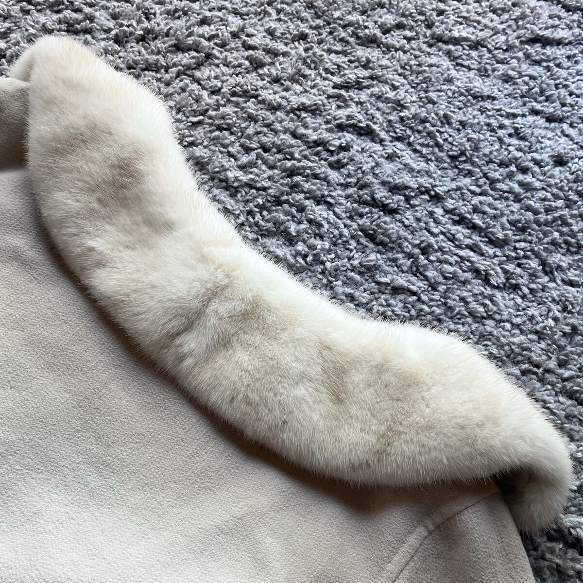 お色はオイスターベージュ。ミンクファー襟はボタンで取り外し可能。前留めはないデザインです。