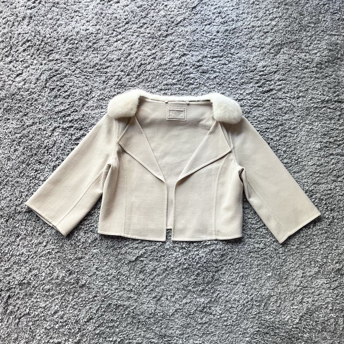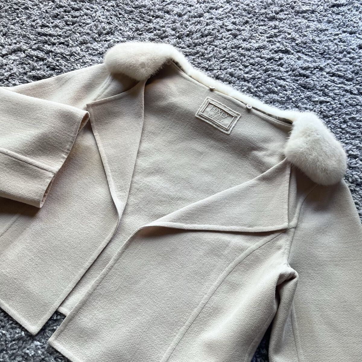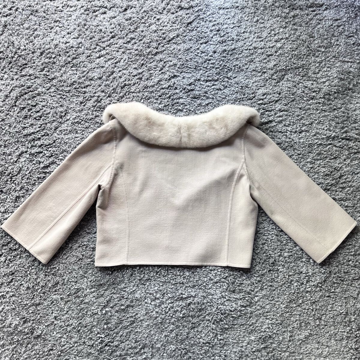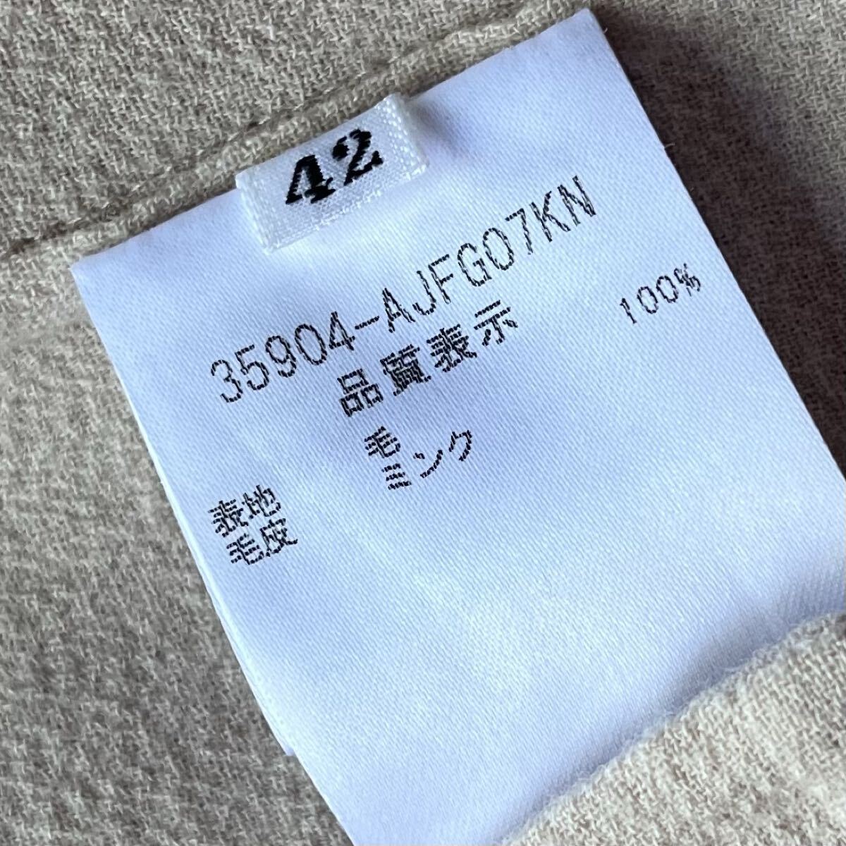 お色はオイスターベージュ。ミンクファー襟はボタンで取り外し可能。前留めはないデザインです。