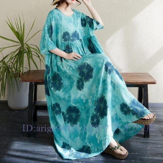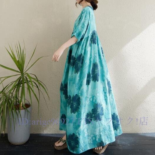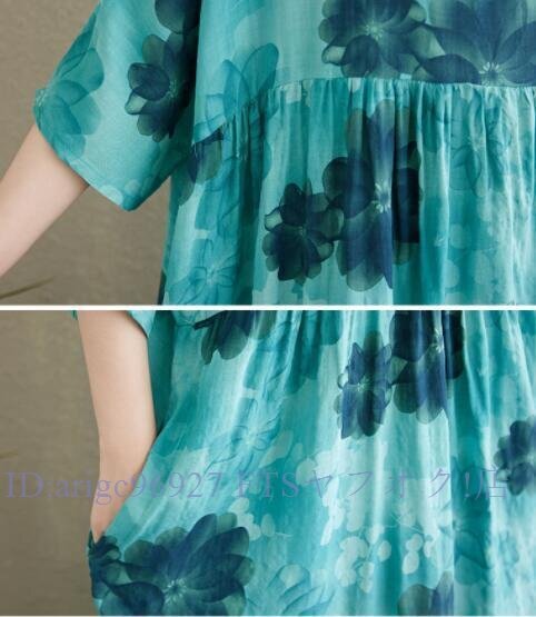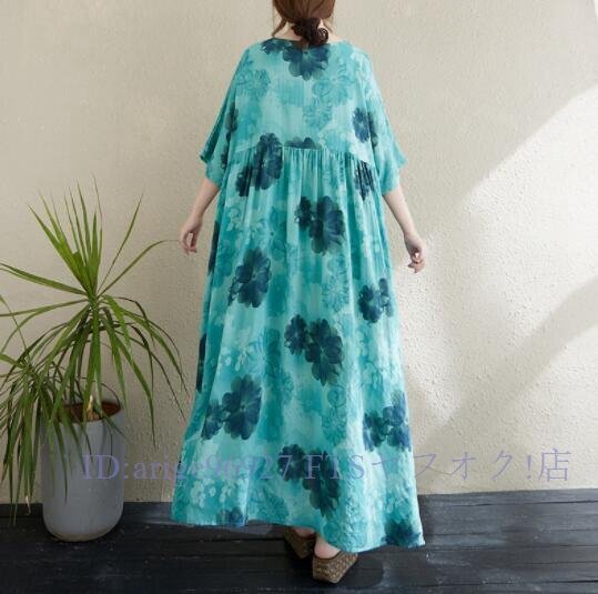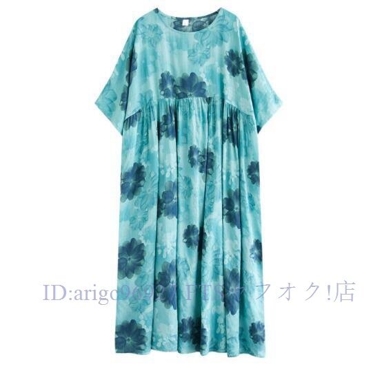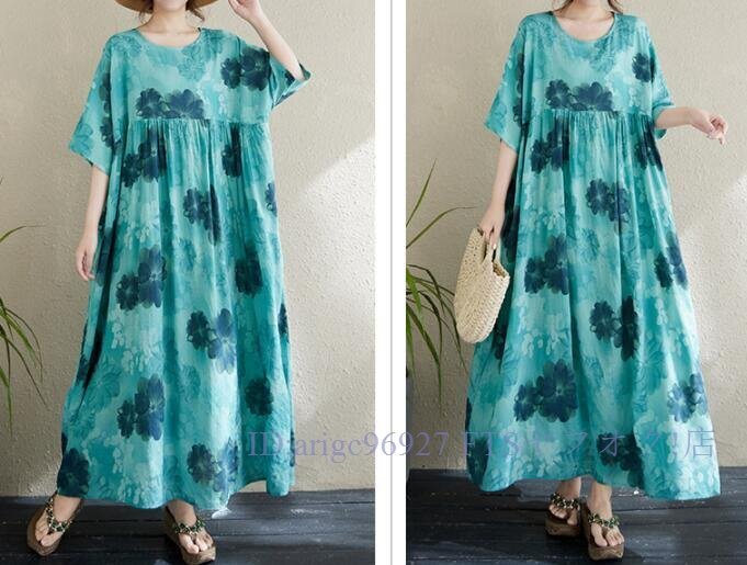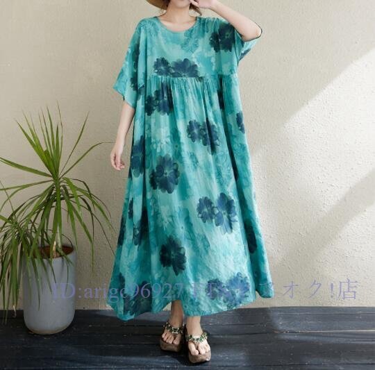 ★新品大きいサイズ ワンピース 花柄ギャザーワンピース 花柄ワンピース ロングワンピース マキシ 半袖 お洒落 体型カバー
