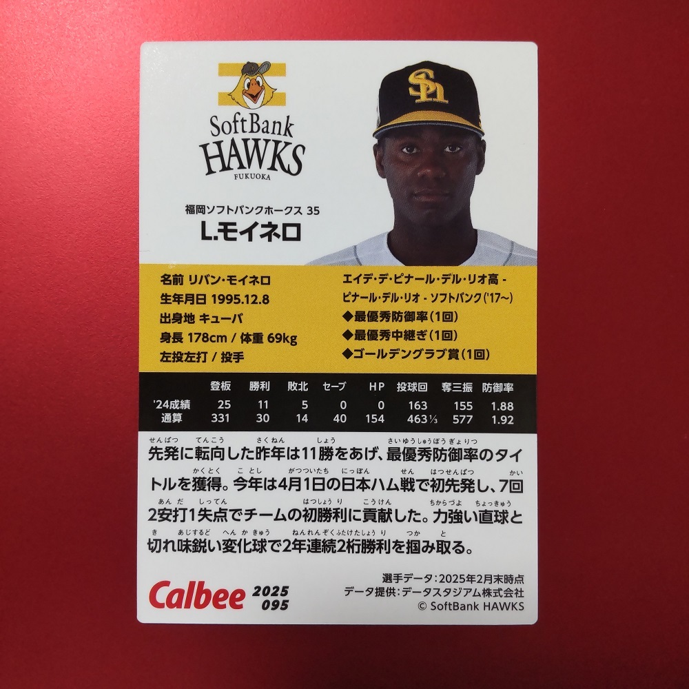 ◆ カルビー 2025年 第2弾 095 L.モイネロ(ソフトバンク) レギュラーカード