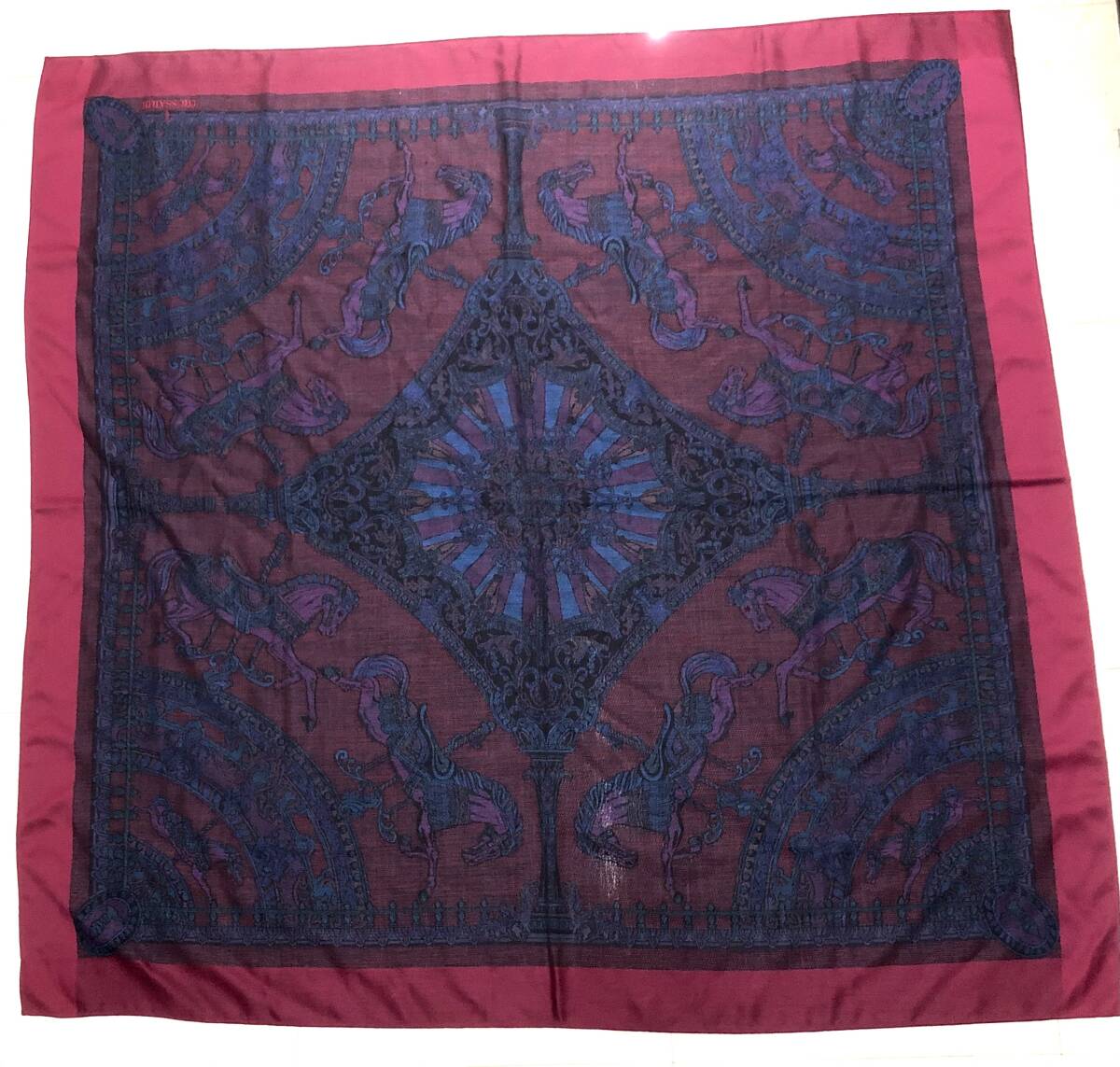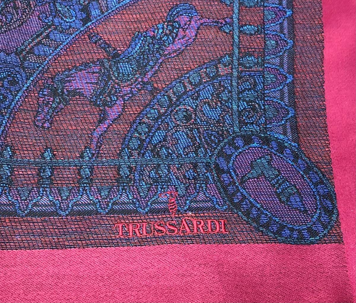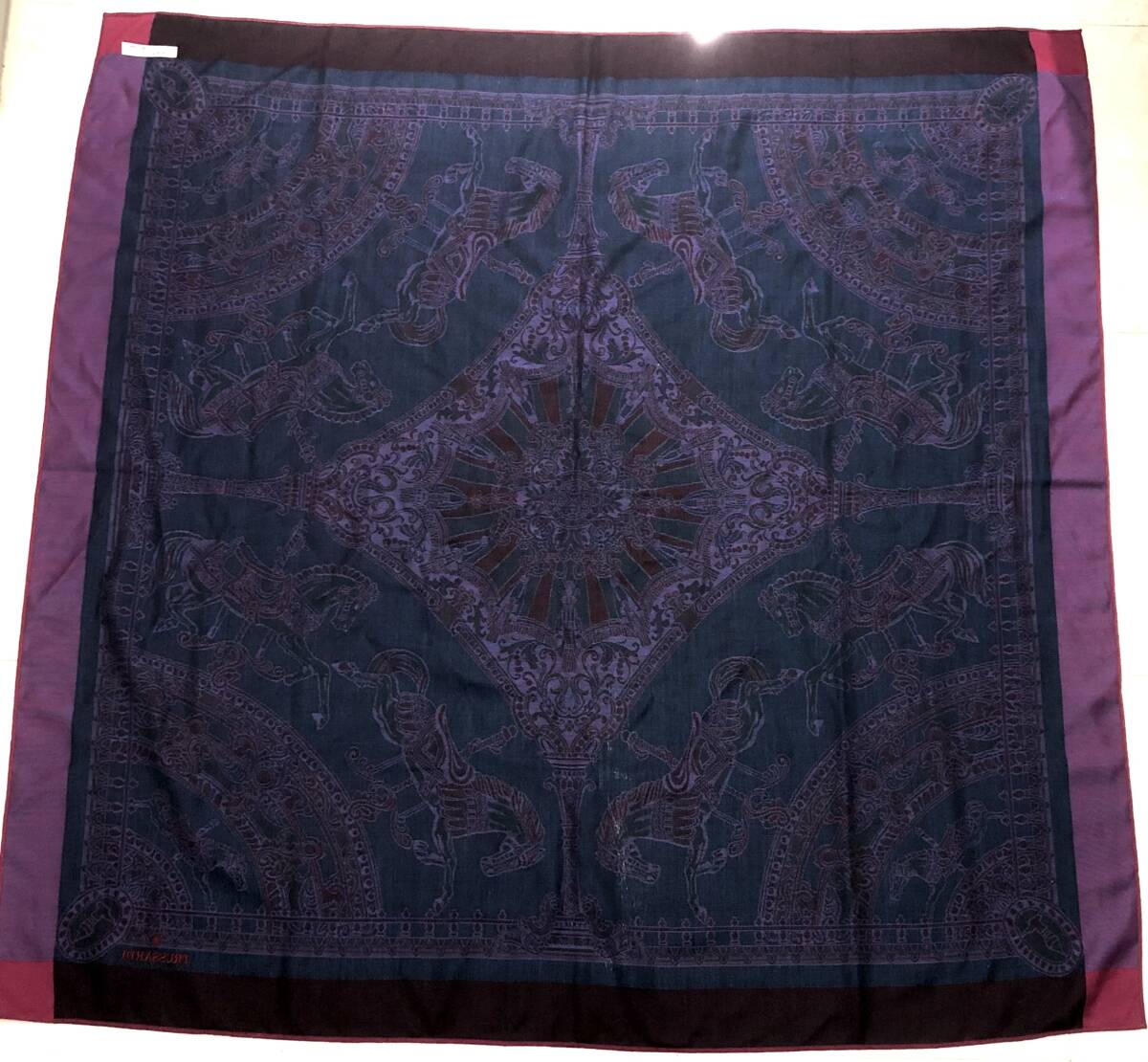 【B】【18143】☆★ TRUSSARDI トラサルディ 大判 ショール ストール ひざ掛け 馬柄 毛100% 現状品★☆