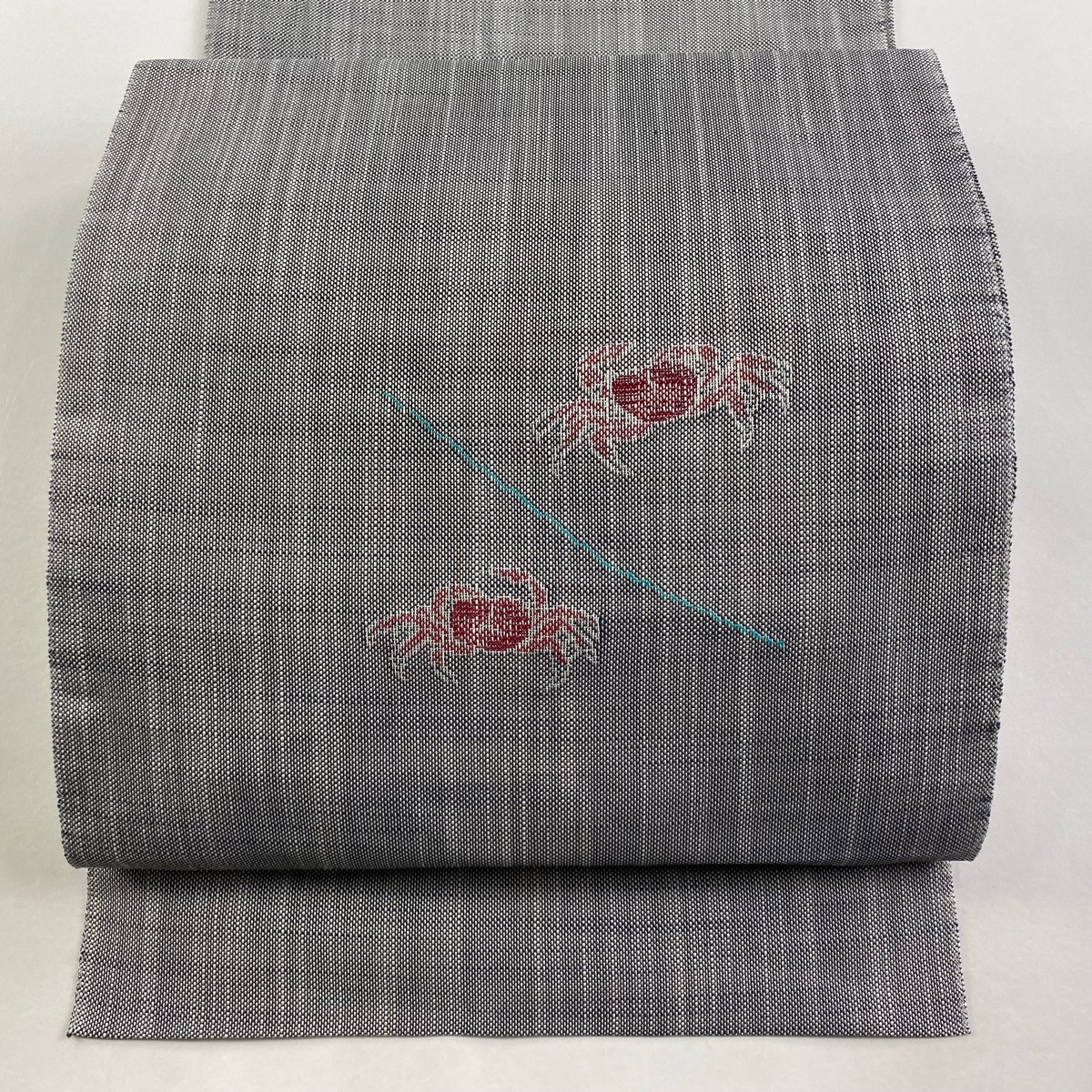 | 名古屋帯 名品 夏帯 松葉仕立て 八寸名古屋帯 カニ 灰色 正絹 【中古】 |