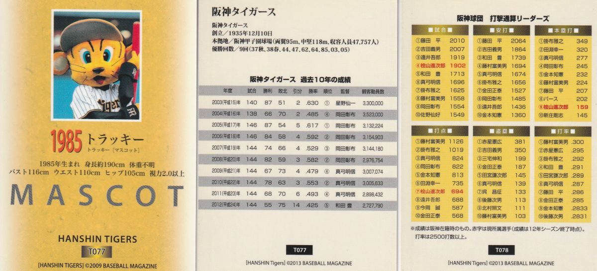 ●2009,13BBM/阪神 【トラッキー/ラッキー】 マスコットカード 3種セット