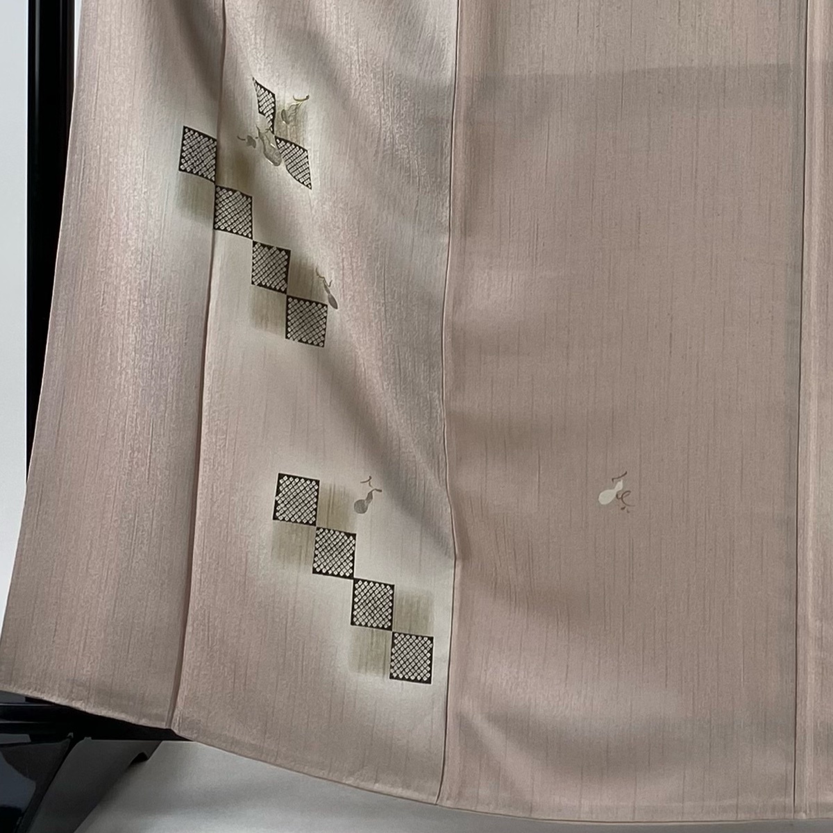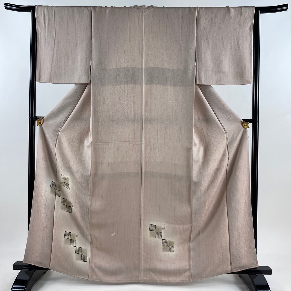 | 付下げ 秀品 瓢箪 疋田 金糸 金銀彩 ピンクベージュ 袷 身丈163.5 裄丈65 M 正絹 【中古】 |
