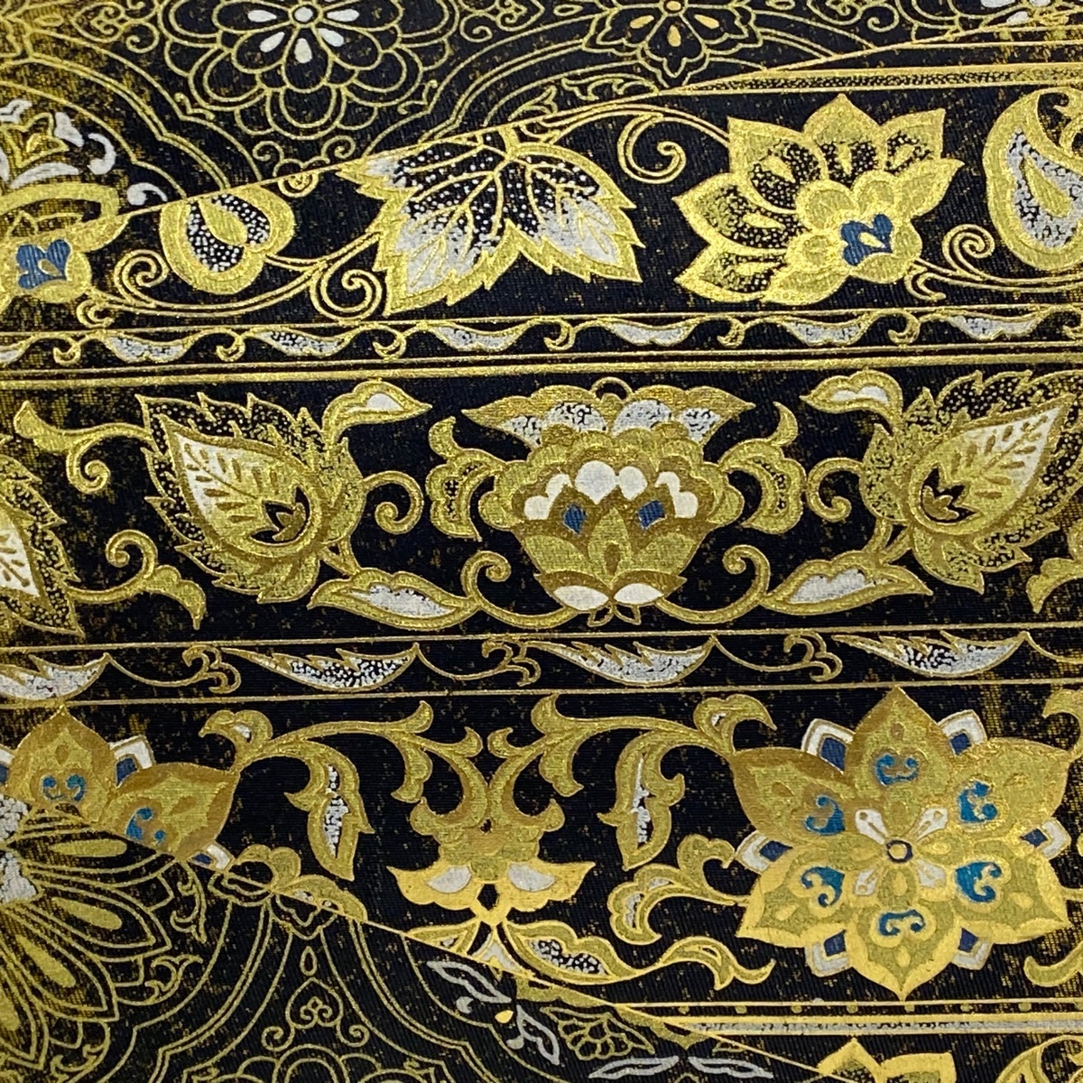 | 袋帯 美品 名品 草花 華文 箔 金彩 墨色 六通 正絹 【中古】 |