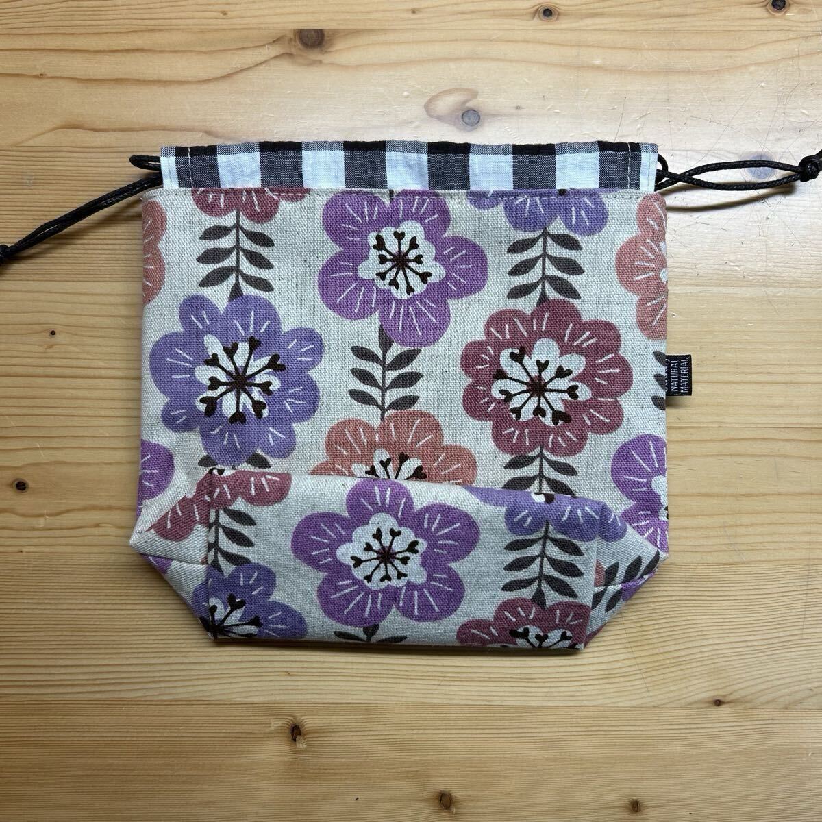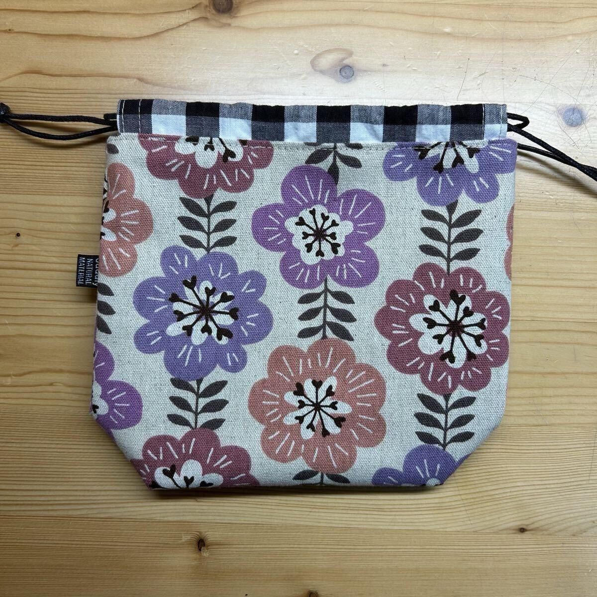 表面:花柄生成色の綿麻、挟みタグ、ワックスコード