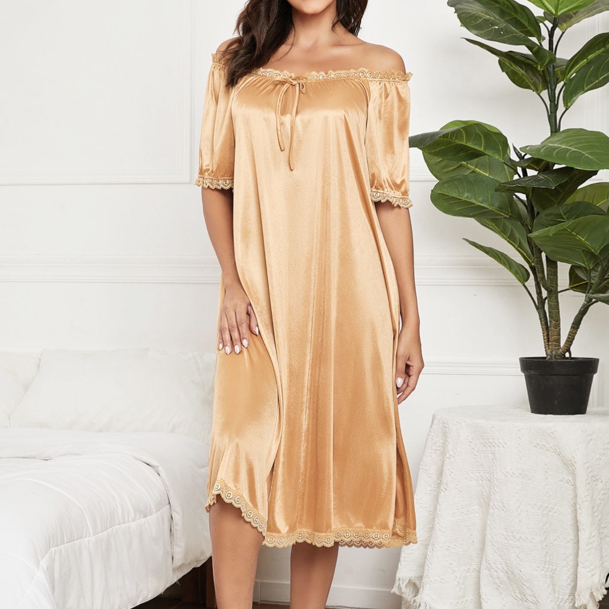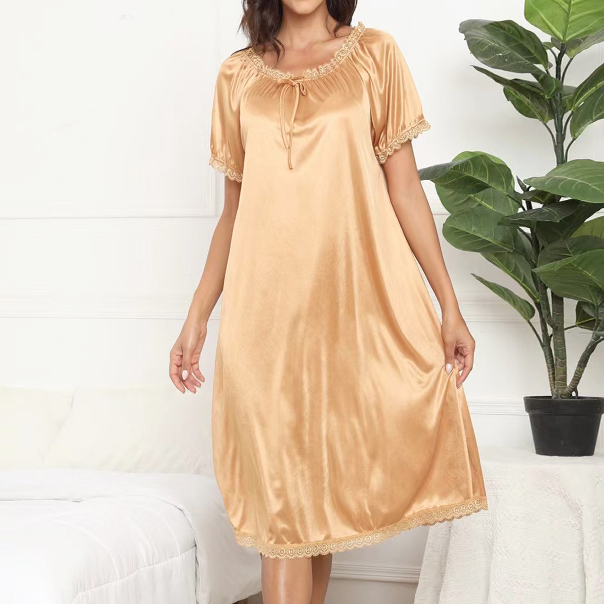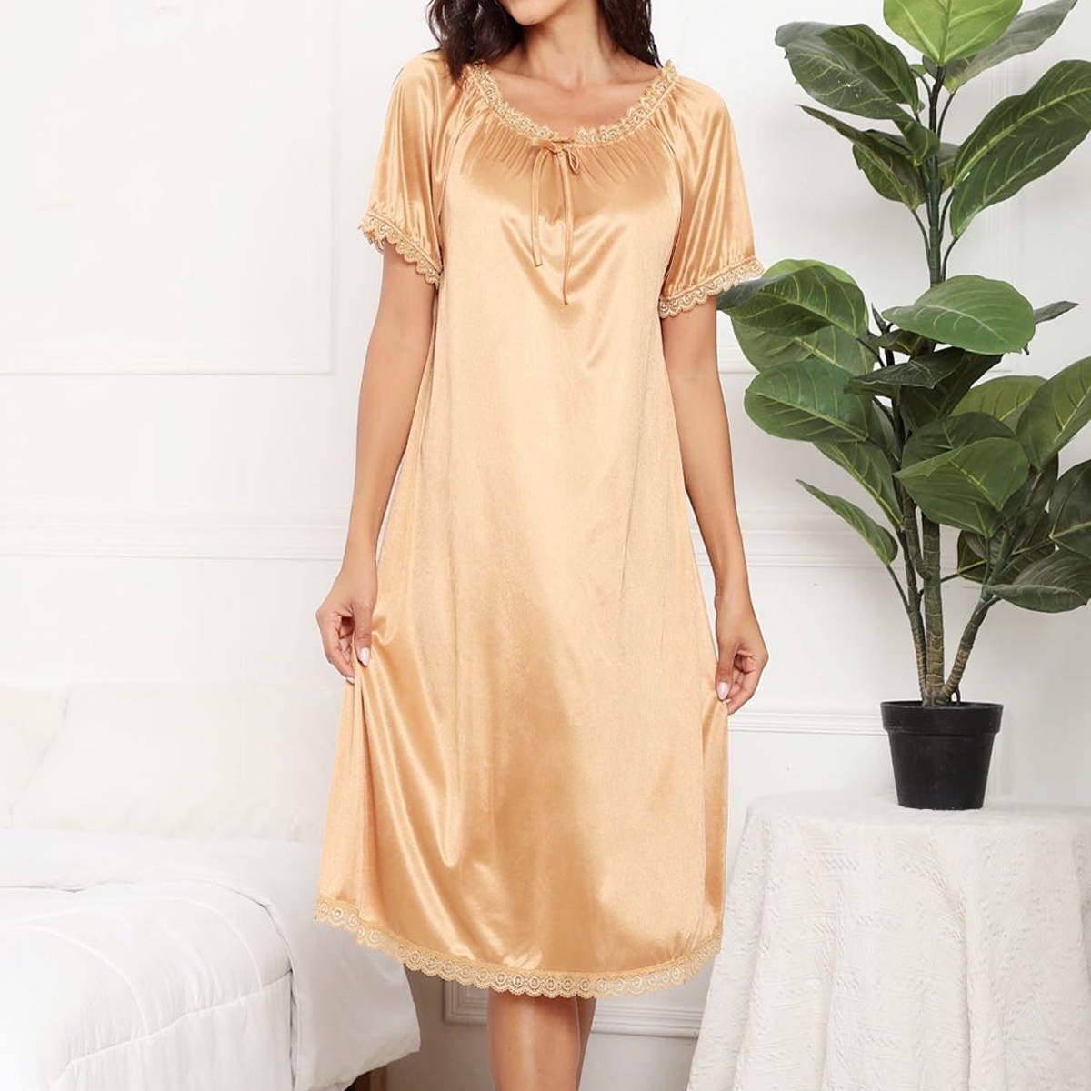 ネグリジェ ナイトウェア ゆったり 光沢ある柔らか生地 エレガントで大人っぽい ゴールド