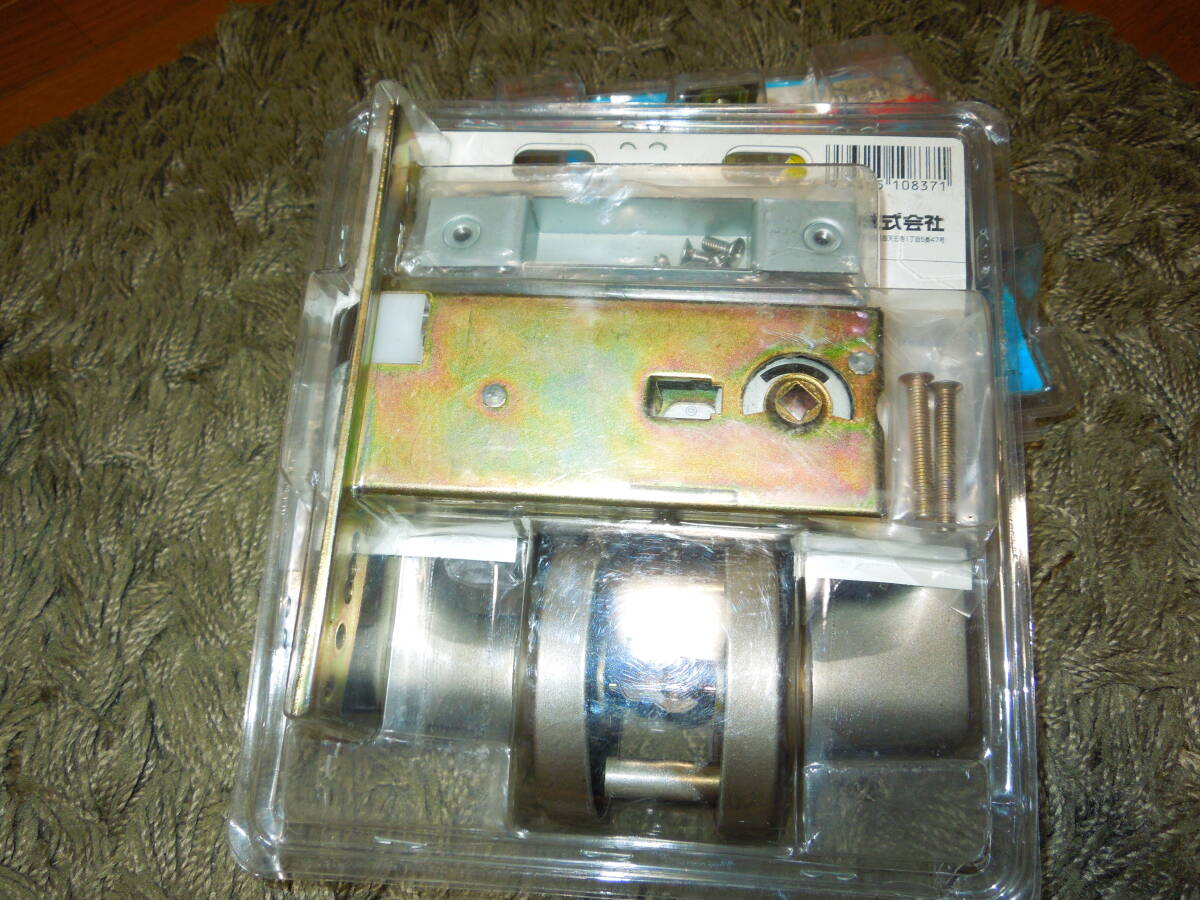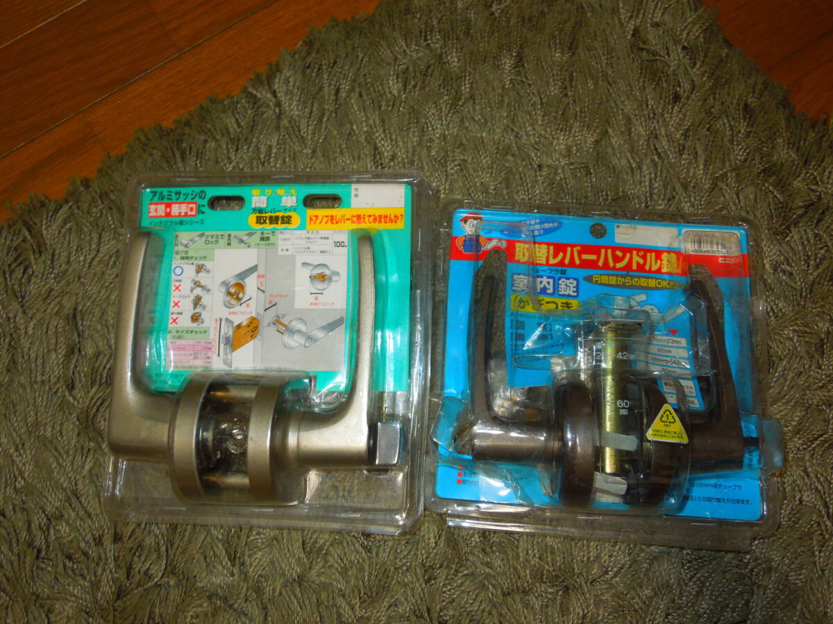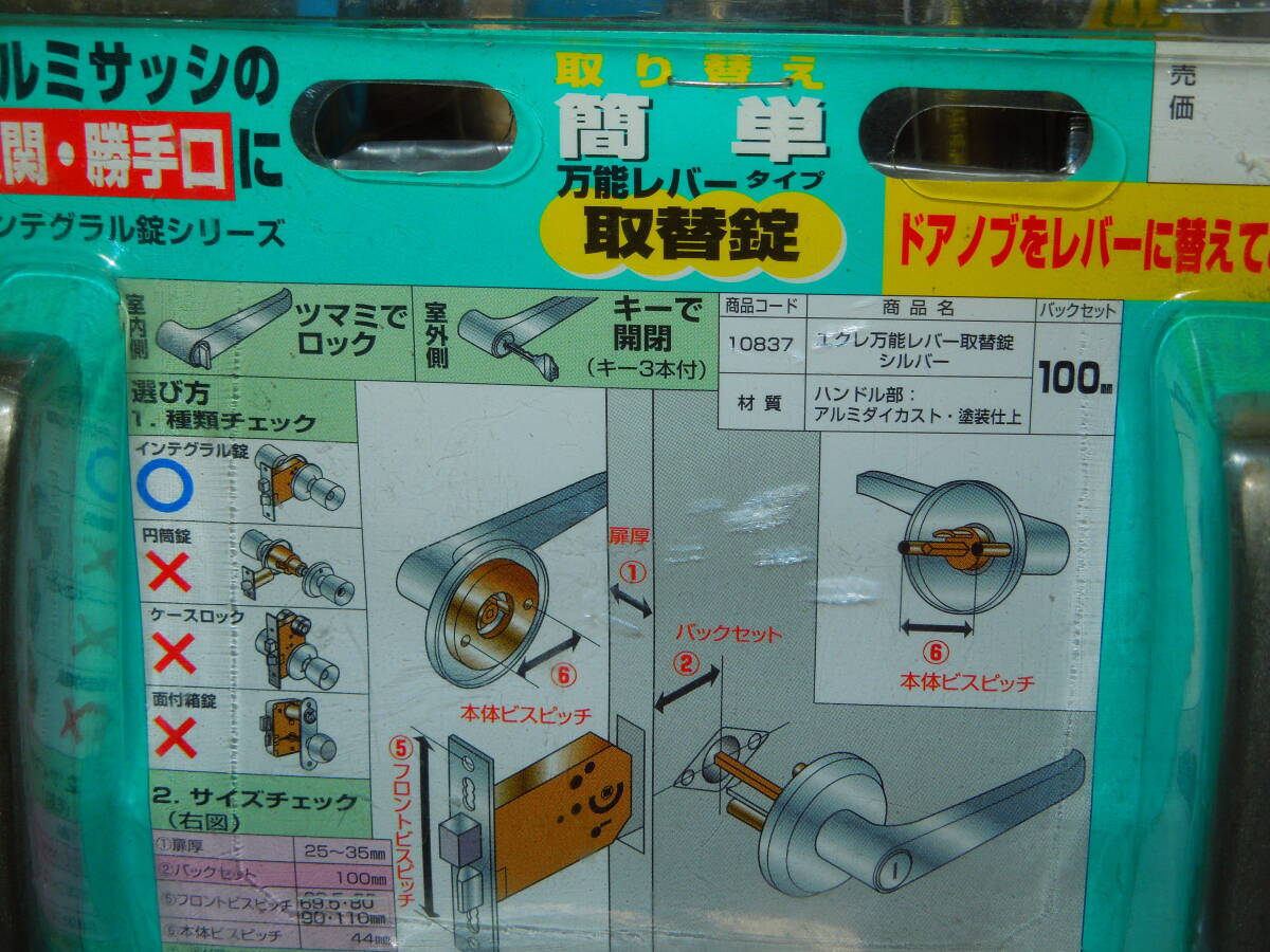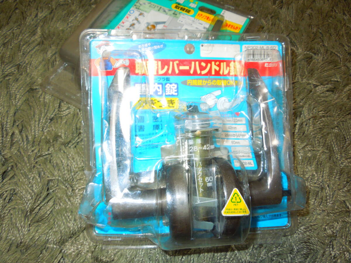 ヒナカ取替レバーハンドル錠 室内錠鍵付 バックセット60/マツ六アルミサッシ玄関勝手口鍵付 バックセット100 年数経過未使用品現状し