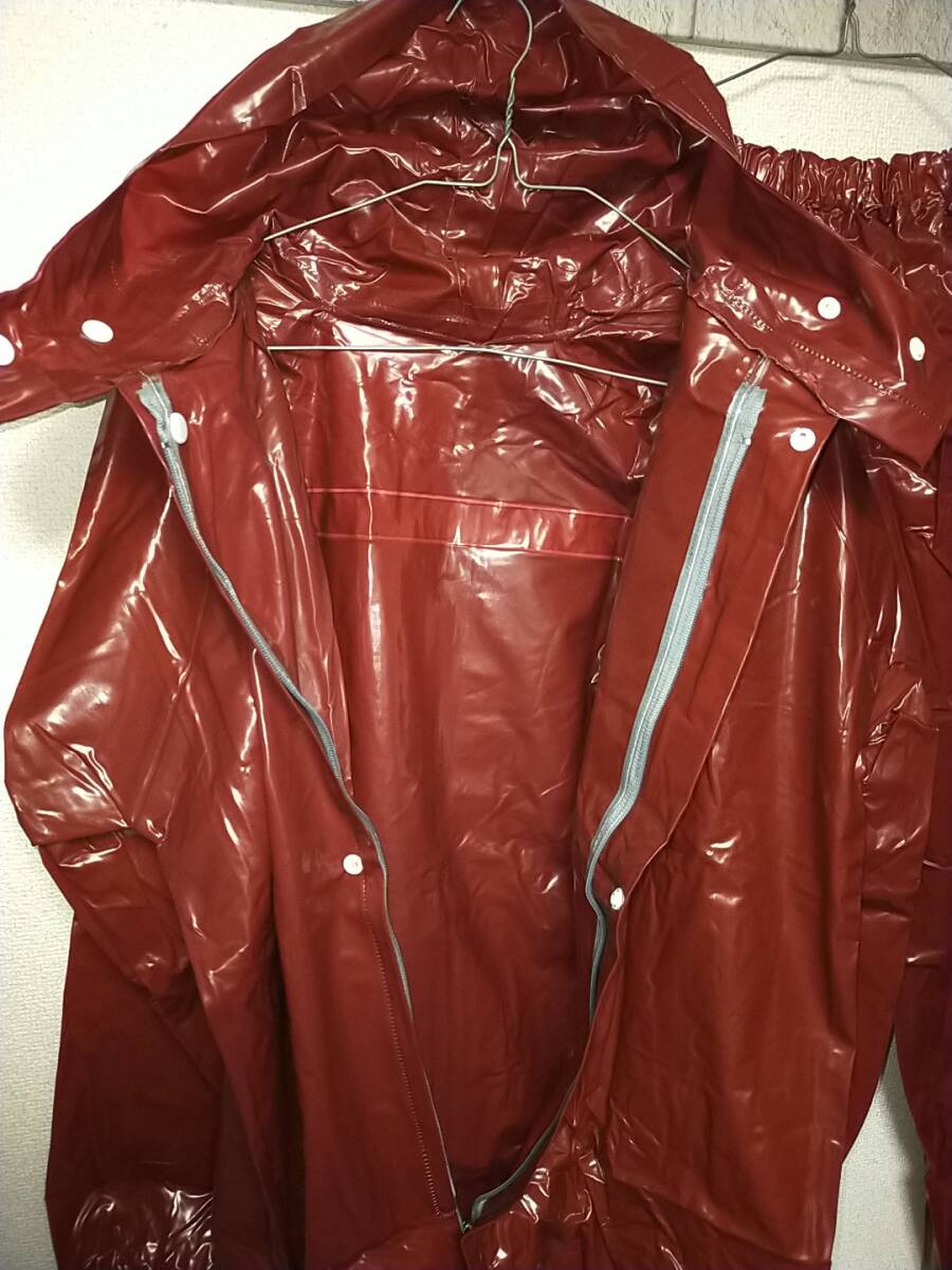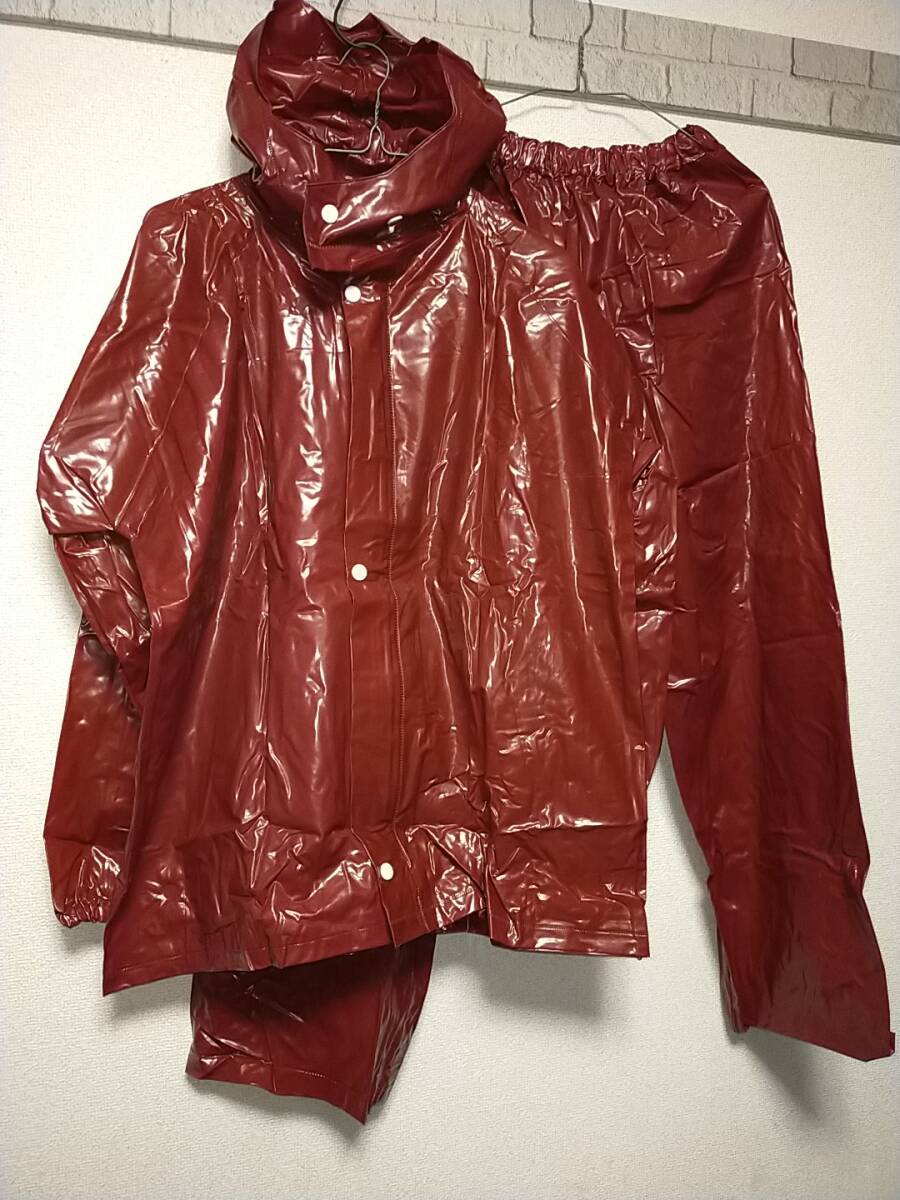 ワインレッド ビニールセットアップ PVC レインウェア 上下セット
