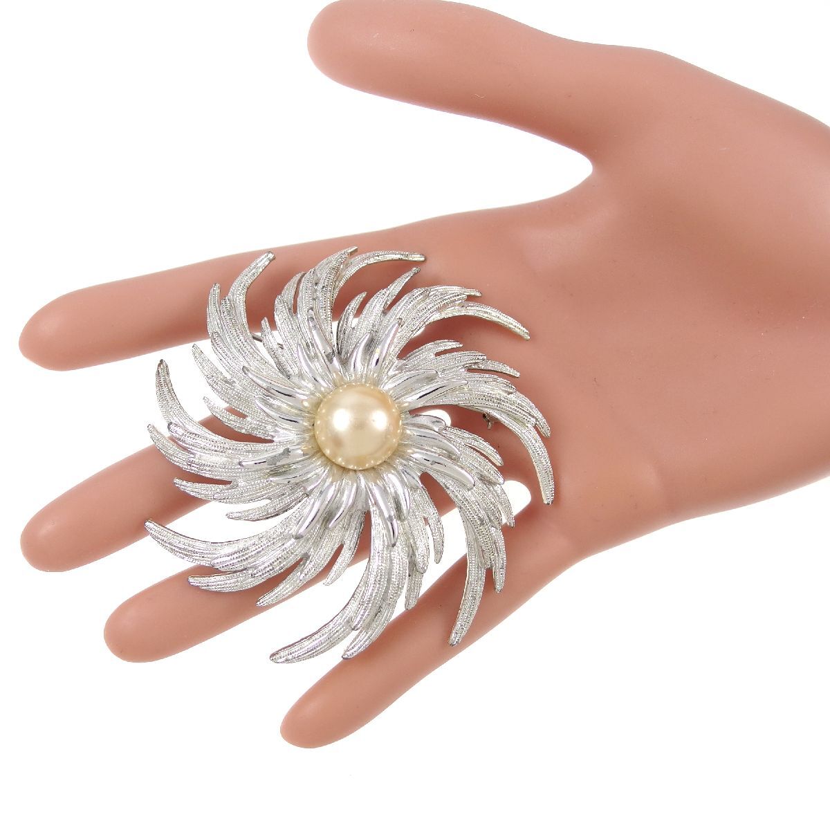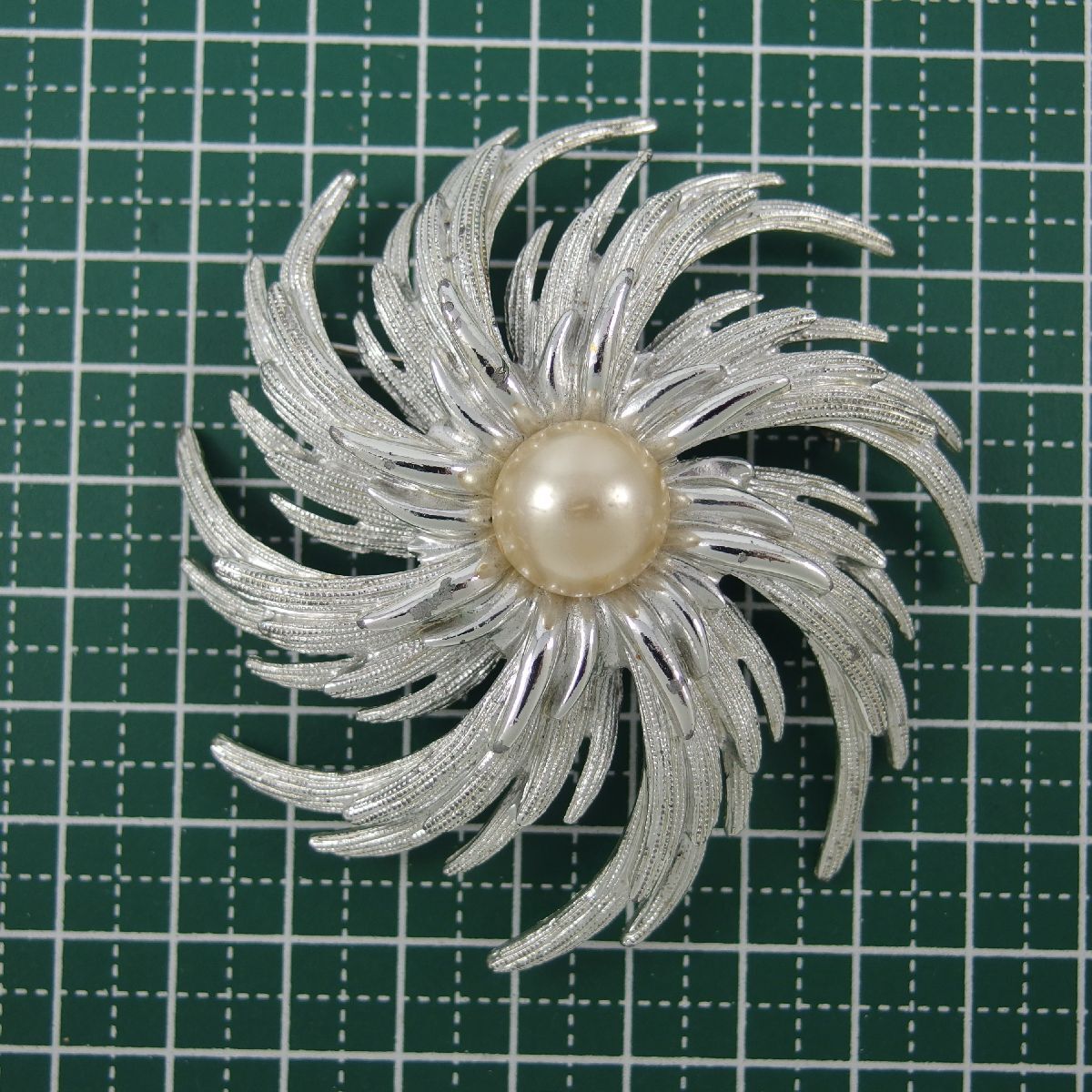 A10716◆【SARAH COVENTRY】◆ フラワーモチーフ 風車 フェイクパール 花 ◆ ヴィンテージブローチ ◆