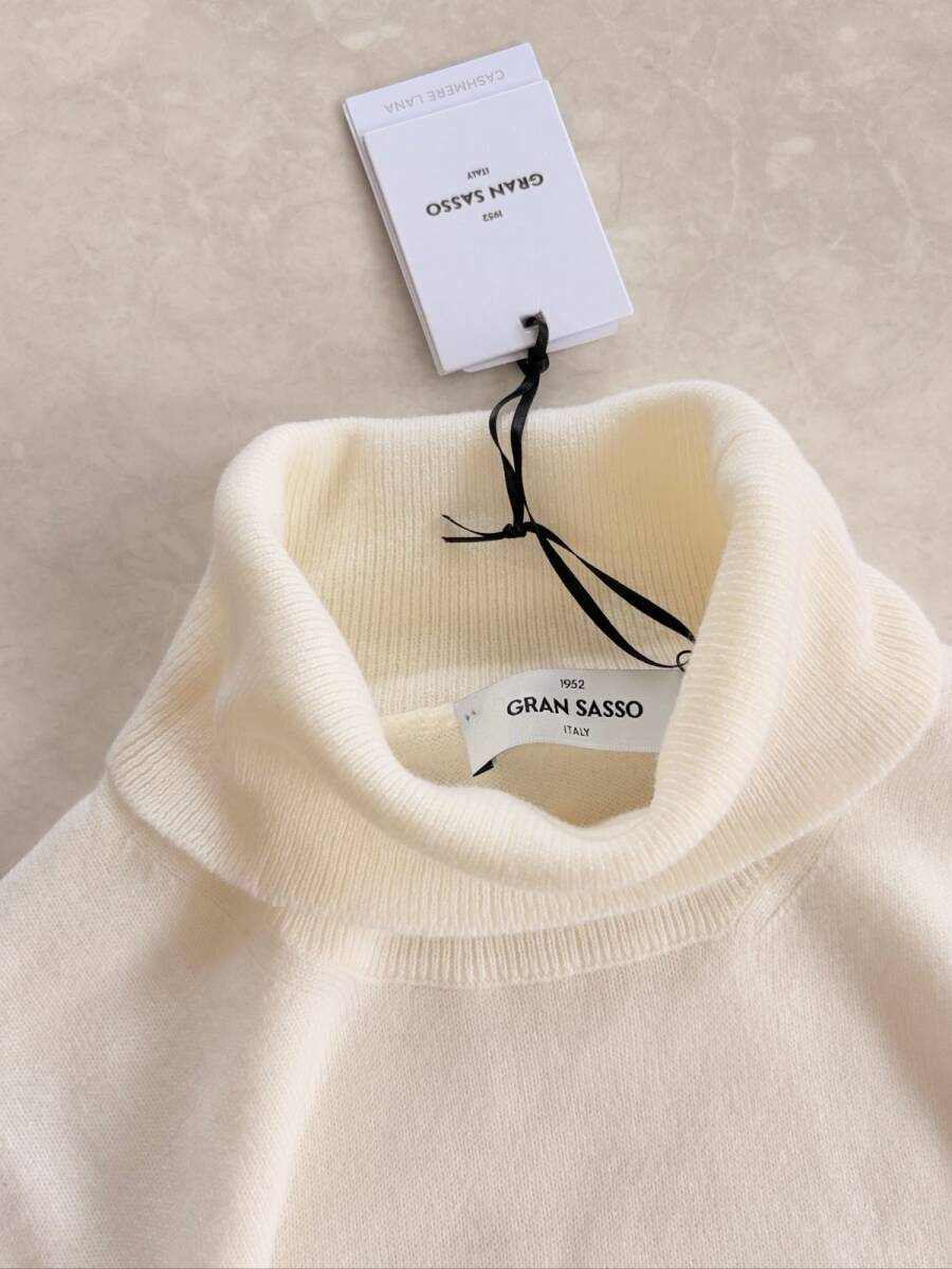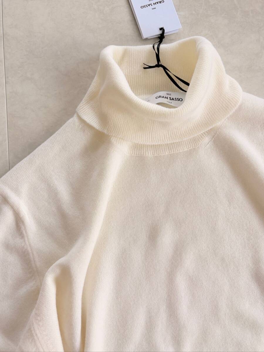 グランサッソ(GRAN SASSO)は、1952年にイタリア中部アブルッツォ州で創業した、伝統と革新を兼ね備えたニット専業ブランドです。 糸の選定から編み立て、縫製、仕上げに至るまでを自社工場で一貫生産することで知られ、その確かな品質は長年にわたり世界中のセレクトショップやエレガントな大人たちから支持を集めています。 アパレル業界に30年身を置いてきた経験からも、グランサッソのニットは「シンプルながら品格を感じさせる仕立て」が特徴的で、まさに大人のワードローブに欠かせない存在です。 今回ご紹介するのは、グランサッソのタートルネックニット。 厚手の編み地で仕立てられており、滑らかさと存在感を両立させた一枚です。 素材はラナヴァージンウール、ヴィスコース、カシミアを絶妙にブレンドした三者混。 ラナヴァージンウールによる暖かさとハリ、ヴィスコースがもたらすドレープ感と上品な光沢、そしてカシミアならではのしっとりとした柔らかさが一体となり、極めて贅沢な風合いを実現しています。 着心地は軽やかでありながら保温性も高く、長時間の着用でも快適さを保ちます。 クラシックなタートルネックデザインは首元に程よいボリュームを生み、ジャケットのインナーとしても、一枚でさらりと着ても存在感を発揮。落ち着いたトーンのカラー展開で、スラックスと合わせれば洗練されたビジネスカジュアルに、デニムと合わせればリラックスした大人のオフスタイルにと幅広く対応します。上質素材とイタリアらしい洗練を凝縮したこの一枚は、まさに永く愛用できる大人の必需品と言えるでしょう。 ブランド:GRAN SASSO / グランサッソ 素材:ラナヴァージンウール80% ヴィスコース10% カシミア10% サイズ:52 着丈:67cm 袖丈:67cm 肩幅:42cm 身幅:56cm ※実寸値となりますが誤差はご了承ください。 ※迅速なお取引を心がけさせていただいております。オークション終了より24時間以内にご連絡をいただけない場合、土日祝日を除き48時間以内にお支払い手続きをいただけない場合は、お取引の意思なしと判断させていただき取引キャンセルとさせていただきます。 万が一上記が不可の場合は事前にご連絡いただくか、入札をお控えいただきますようお願い申し上げます。 ※なるべく現物に近いお色味で撮影するよう心掛けておりますが、閲覧環境の違い等によって違いが出る場合があります。 差し替えトラブルを避ける意味でも上述した旨含め、イメージと違う等での返品は受け付けておりません。 百貨店並みのサービスを求める方や神経質な方の入札はお控えいただきますようお願い申し上げます。 また、差替えやSNS使用後の返品等を防止するためためにも、原則返品には応じられません。 疑問点や心配事等がある場合は入札前に質問欄にてお問い合わせください。 ※当方が出品するすべての商品は間違いなく本物ブランド品となりますので、安心してオークションにご参加ください。 万が一、第三者等により偽物と判断された場合、商品の返品、お支払いただきました全額を返金をいたします。 |