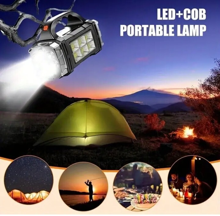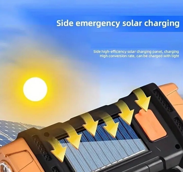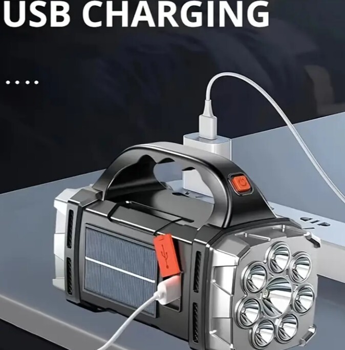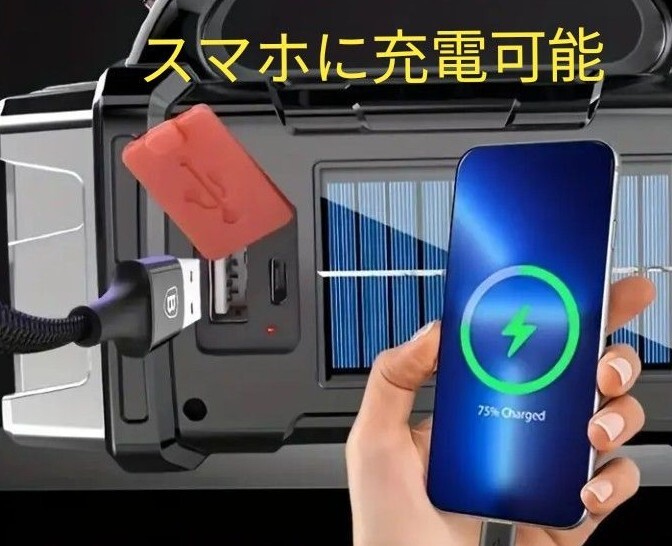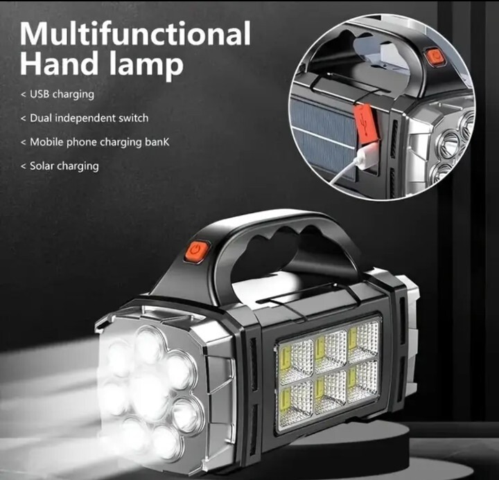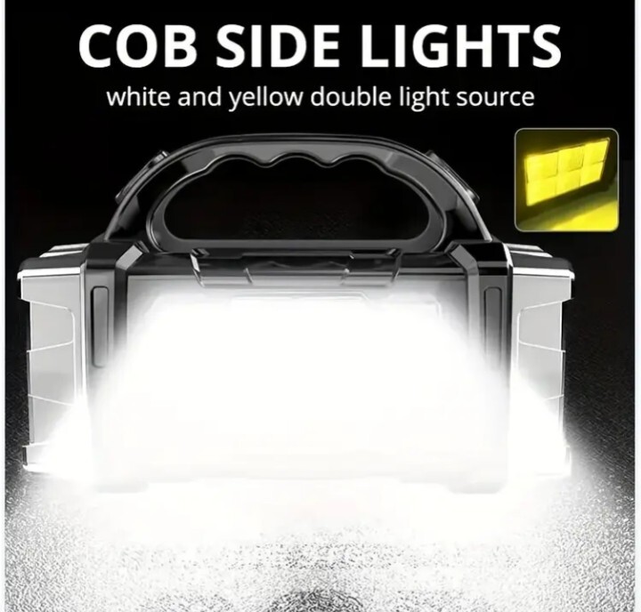 超大型 LED 懐中電灯 充電式 4モード COBライト ソーラーパネル装備 防水 スマホ充電可能 シルバー!