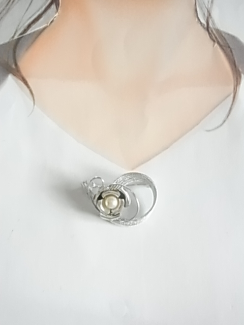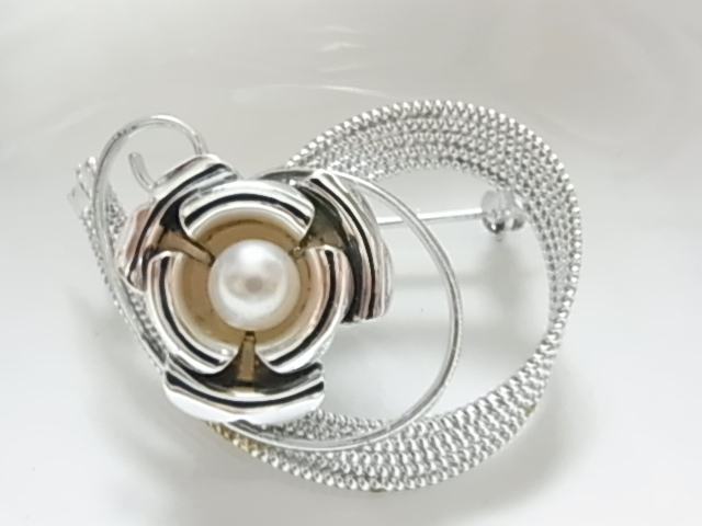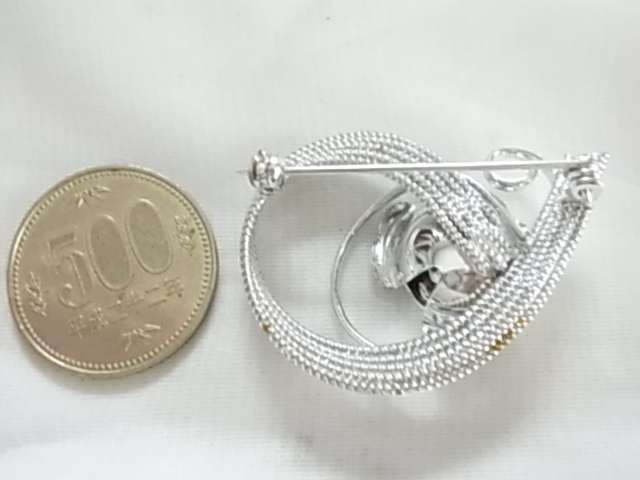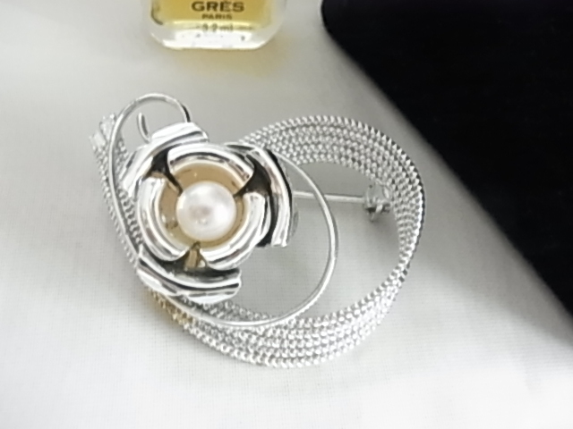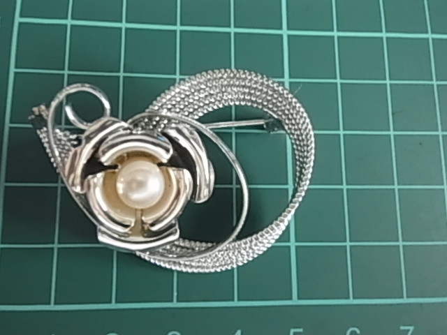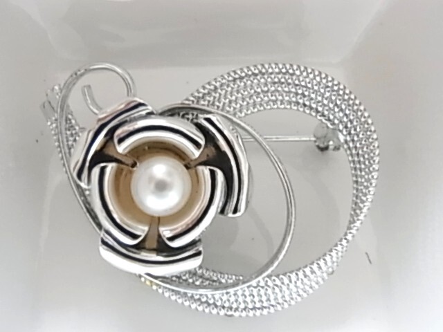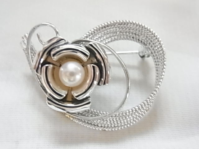 ビンテージ/ヴィンテージ シルバートーン 銀色トーン fakeパールが輝くビジュー お花のようなデザイン 昭和レトロの素敵なブローチ※