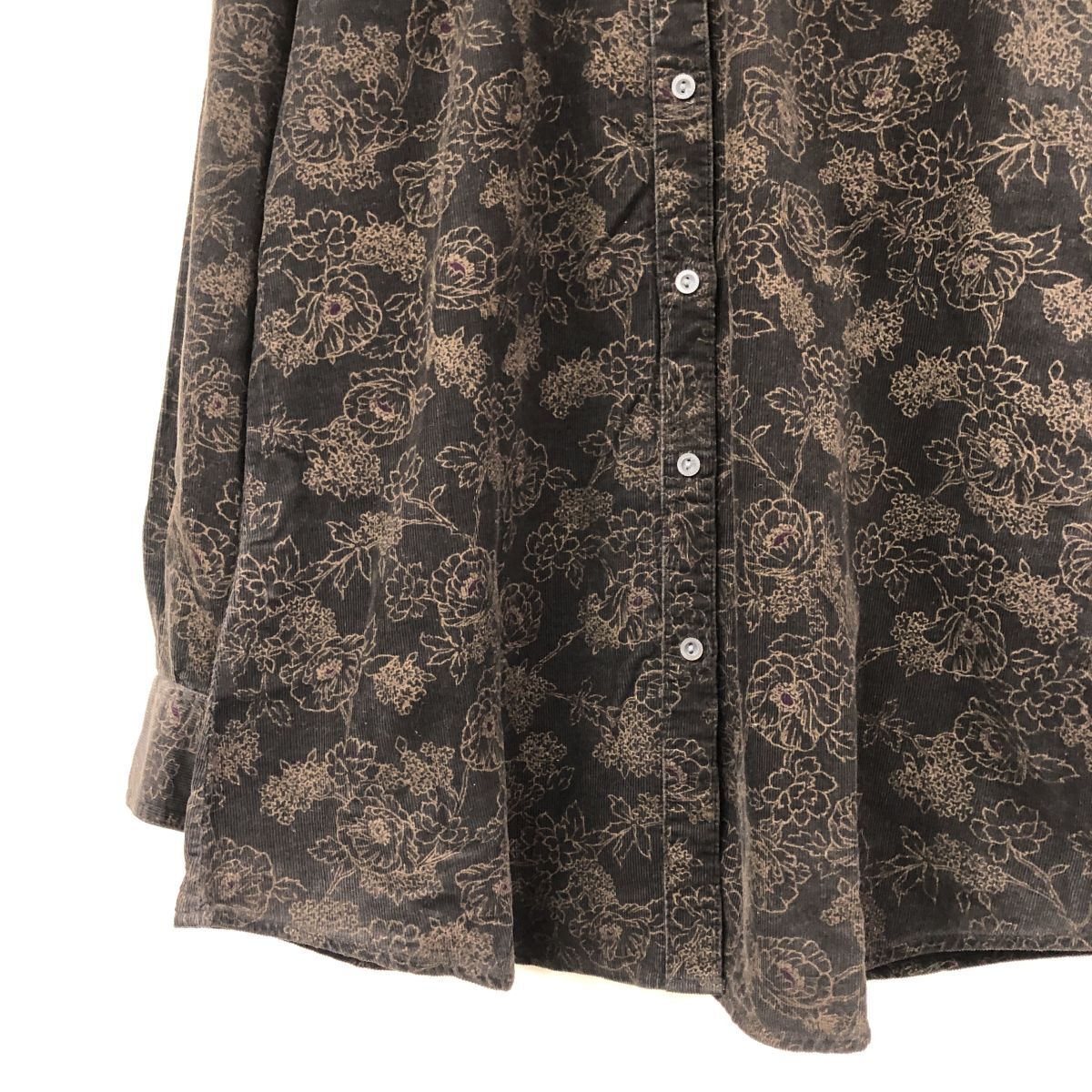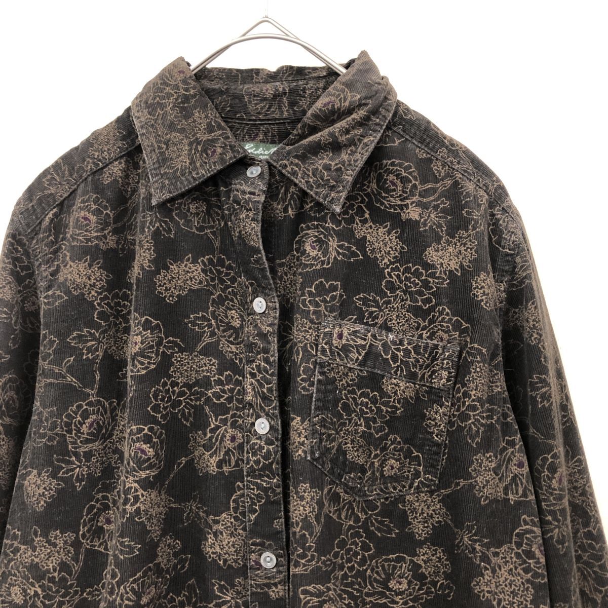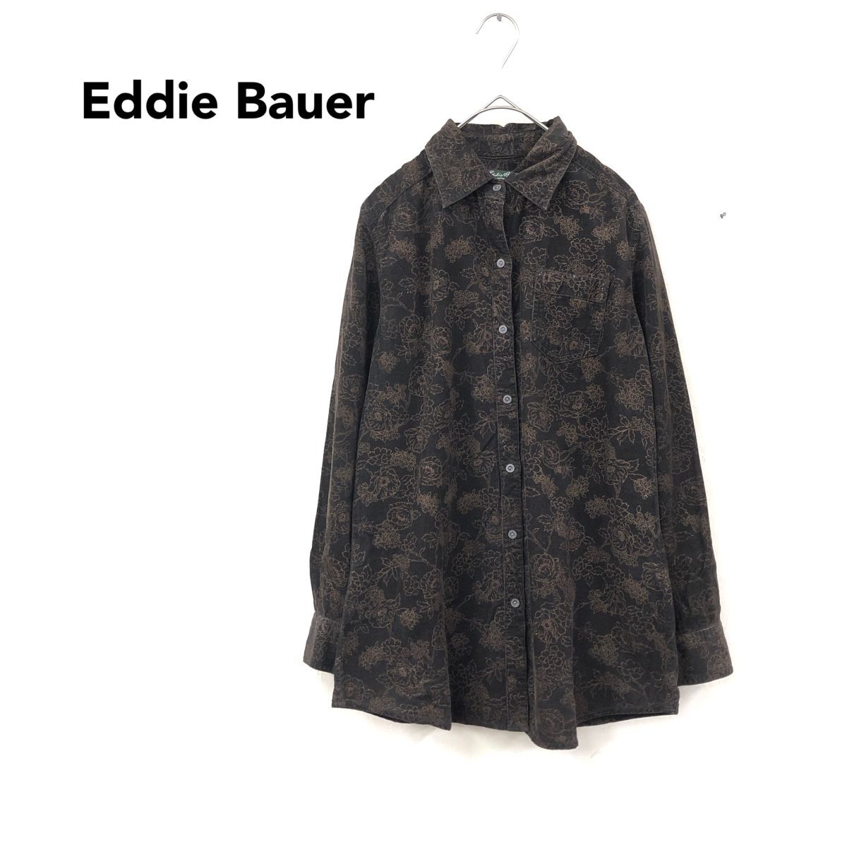 2K2050-Y-N◆Eddie Bouer エディーバウアー 細畝コーデュロイ長袖シャツ 総柄 花柄 胸ポケット レディース ◆sizePS ブラウン 綿