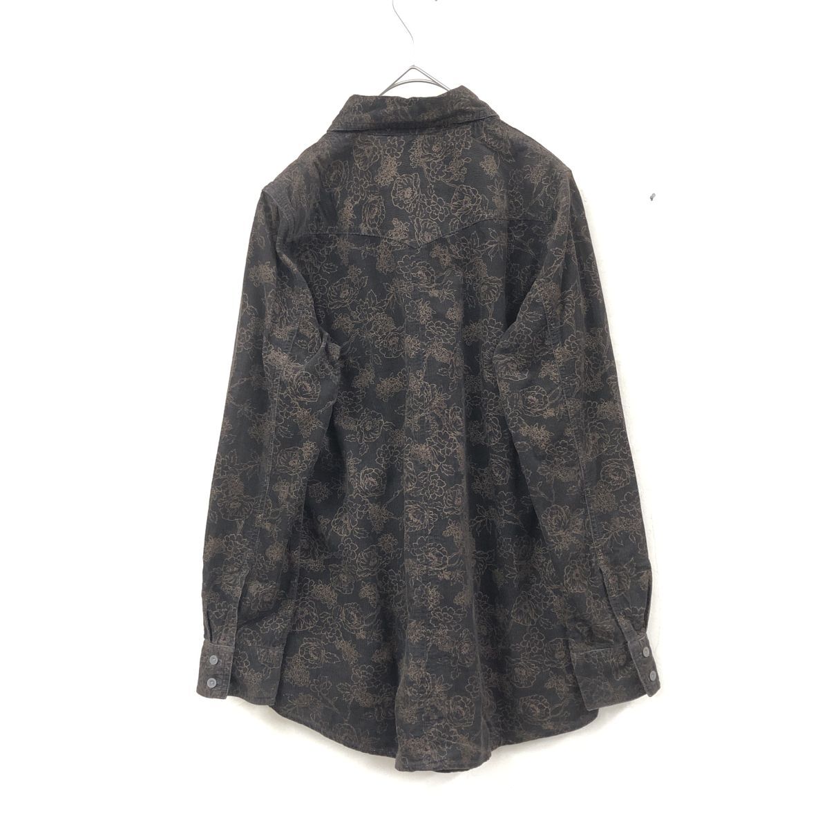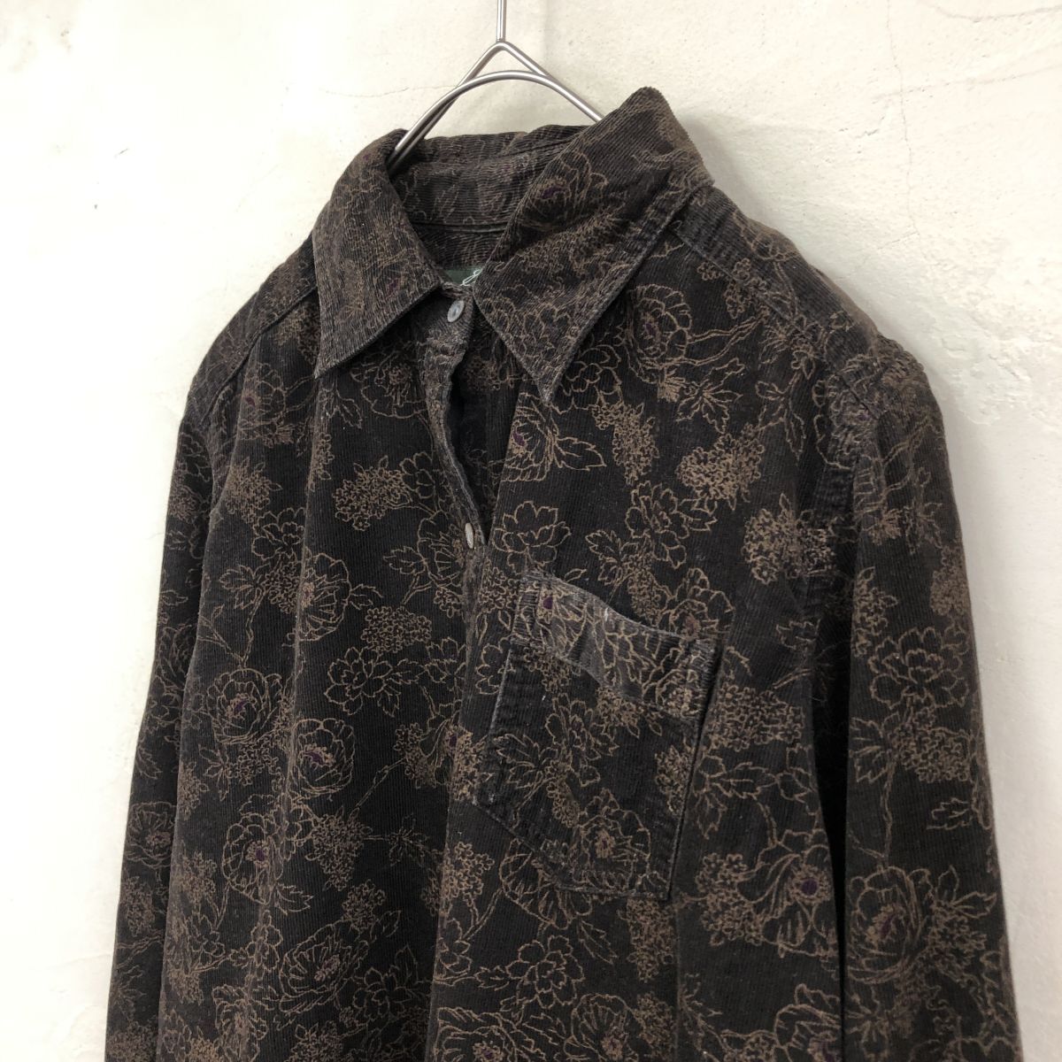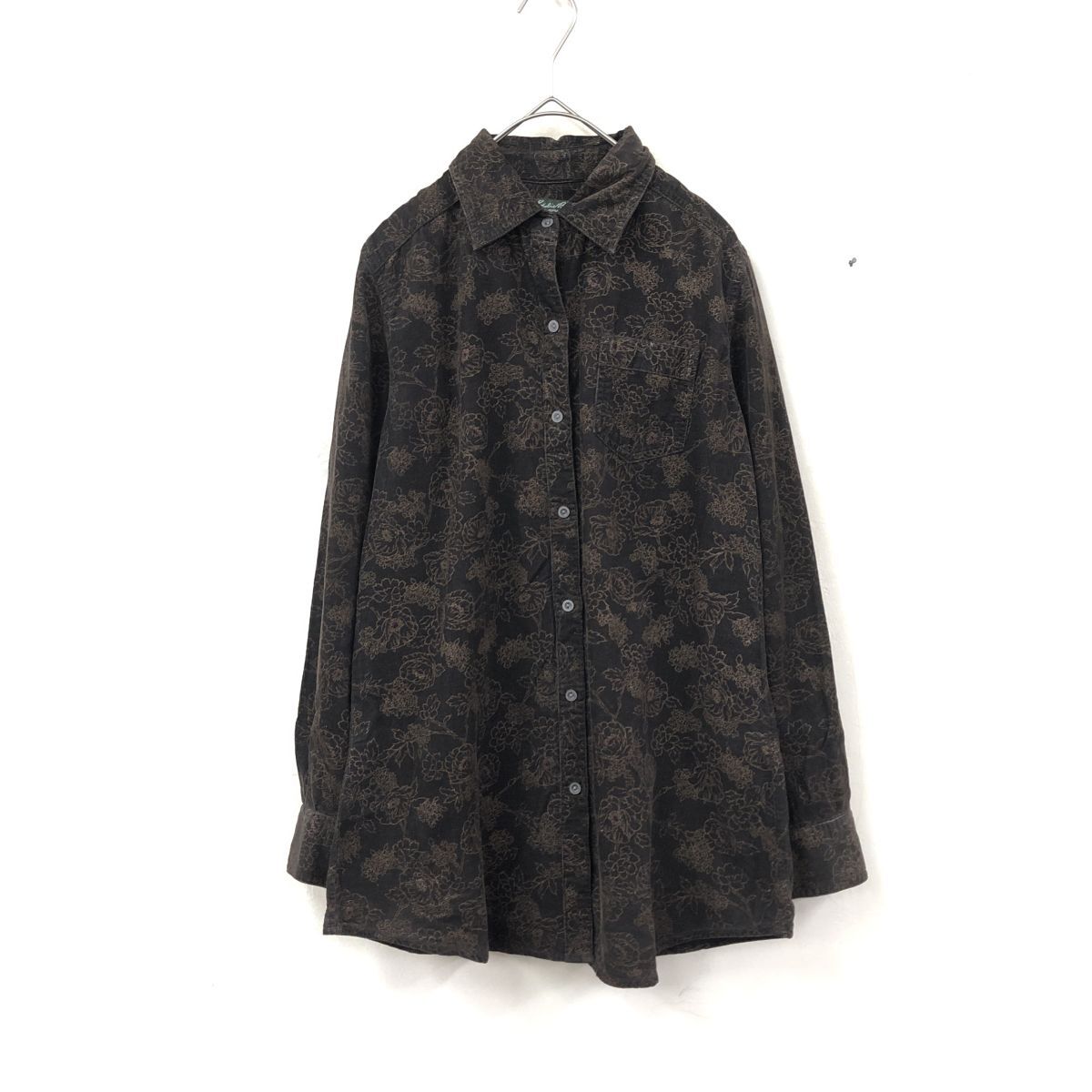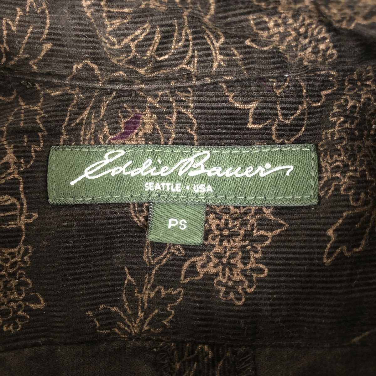 2K2050-Y-N◆Eddie Bouer エディーバウアー 細畝コーデュロイ長袖シャツ 総柄 花柄 胸ポケット レディース ◆sizePS ブラウン 綿
