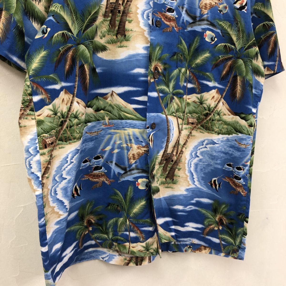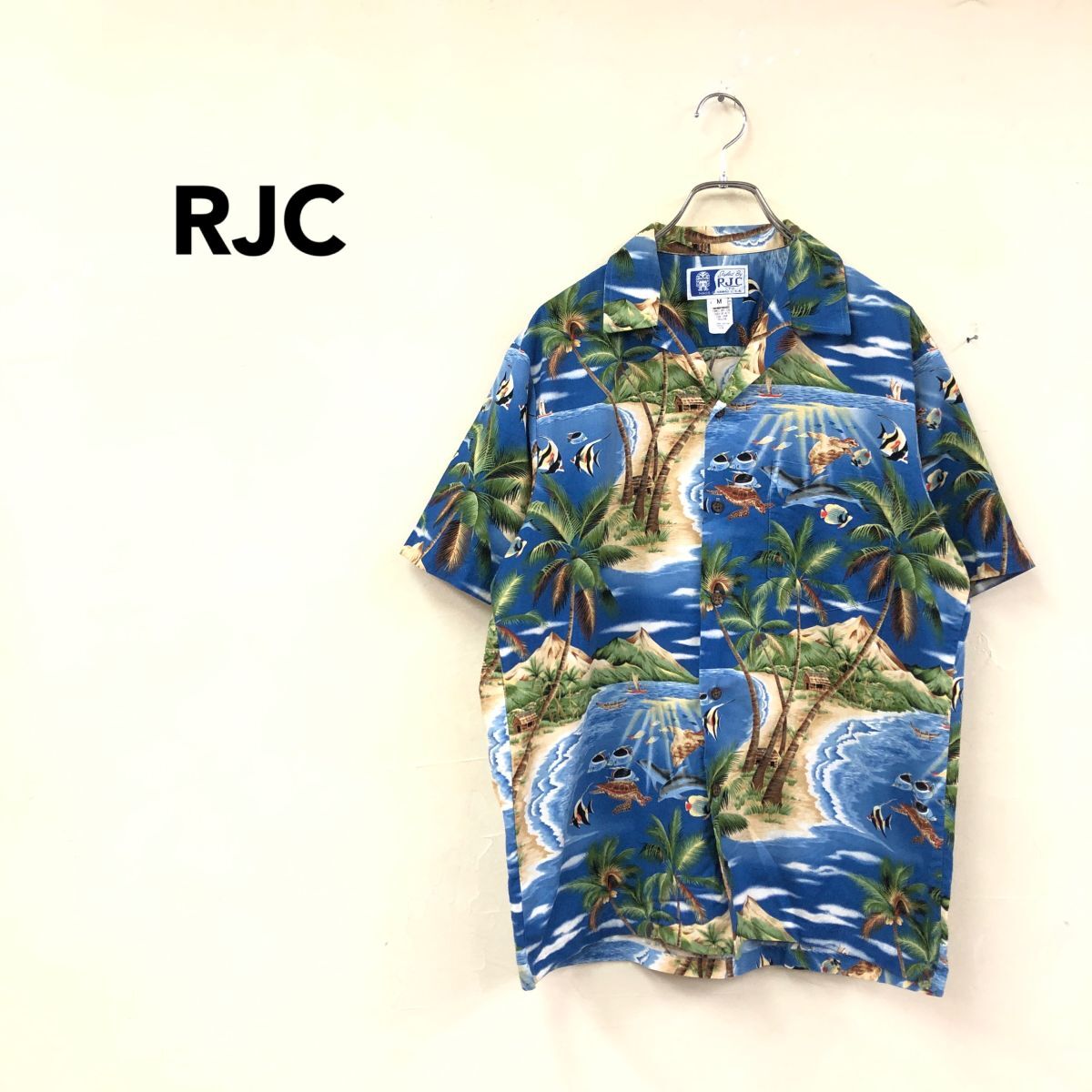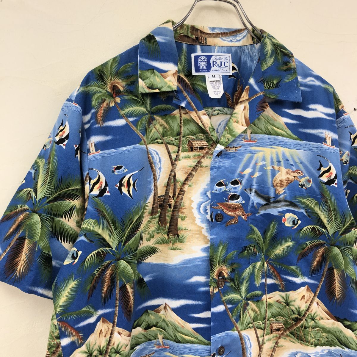 2K1786-K◆良品 HAWAII USA製 styled by RJC アロハシャツ◆sizeM ブルー オーシャン 開襟 綿100% カジュアル 胸ポケット メンズ