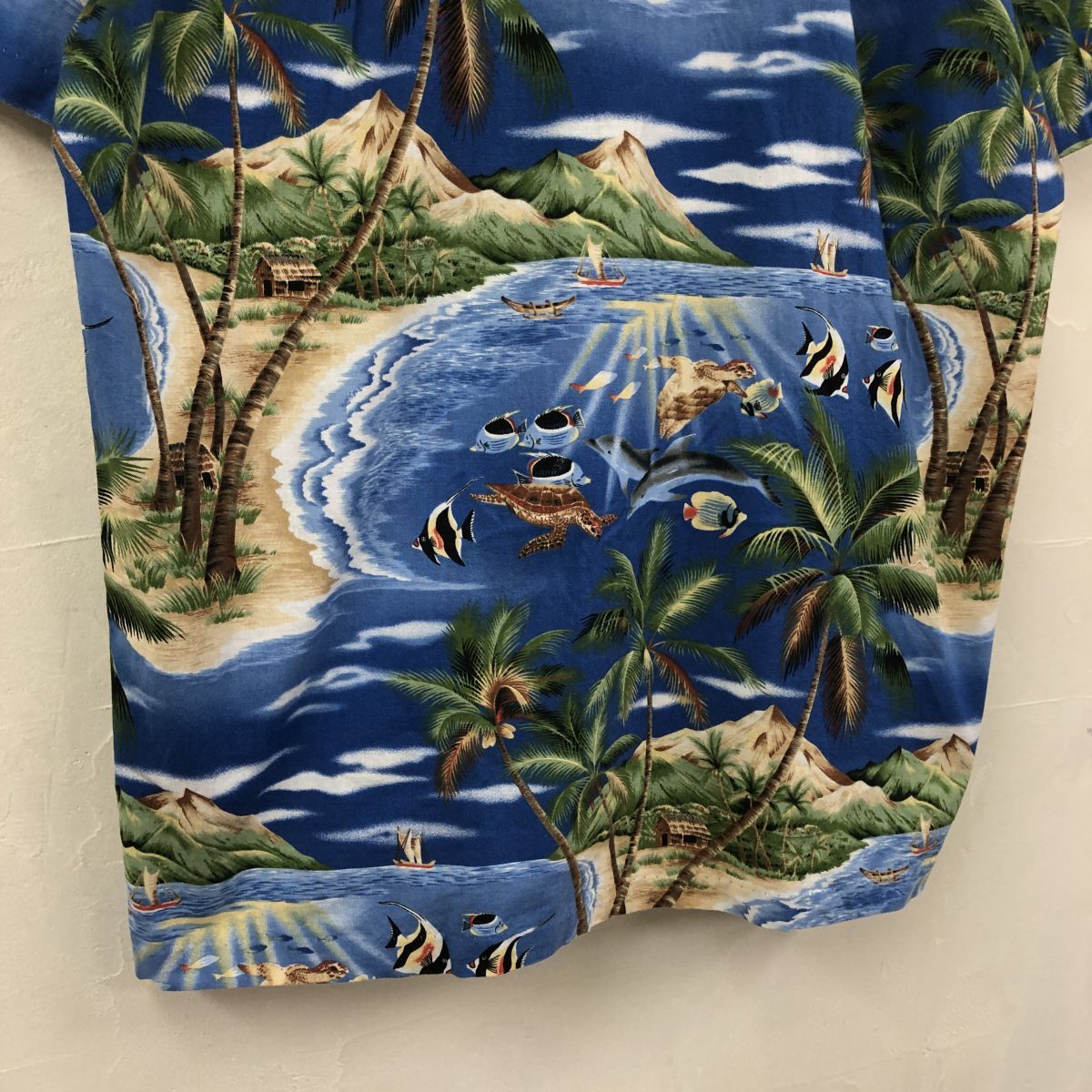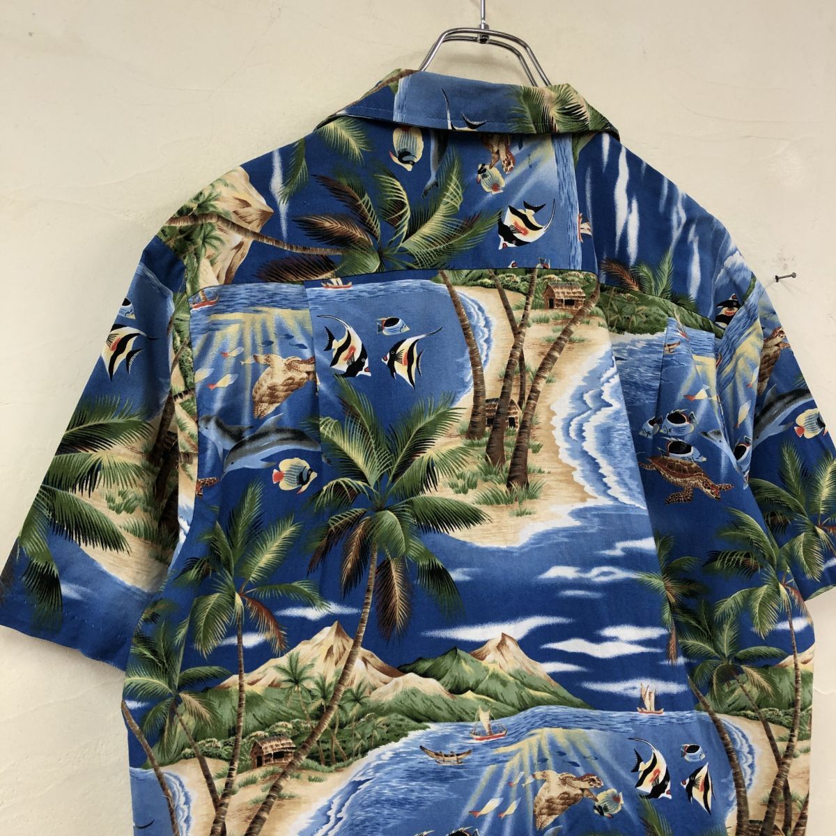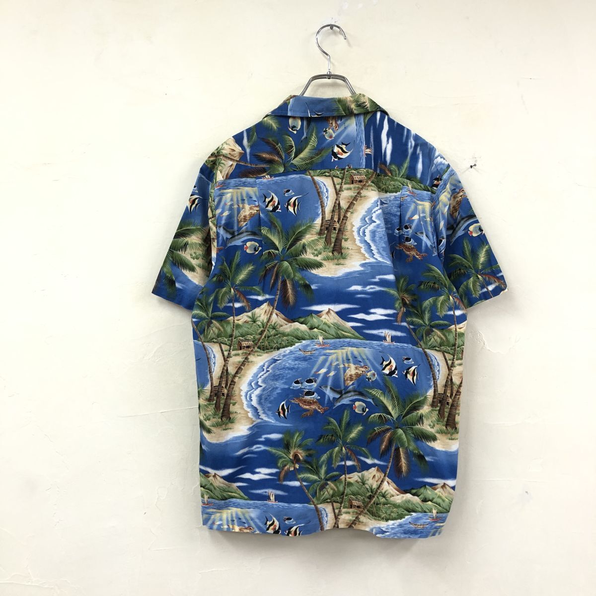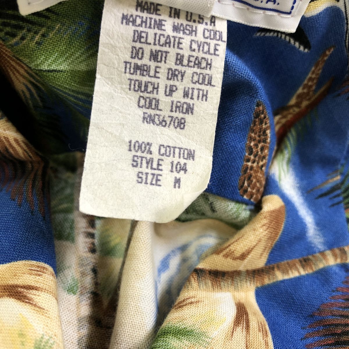 2K1786-K◆良品 HAWAII USA製 styled by RJC アロハシャツ◆sizeM ブルー オーシャン 開襟 綿100% カジュアル 胸ポケット メンズ