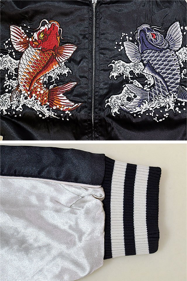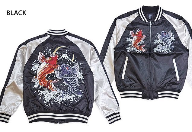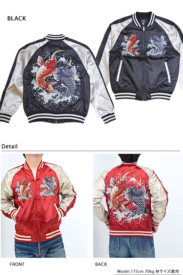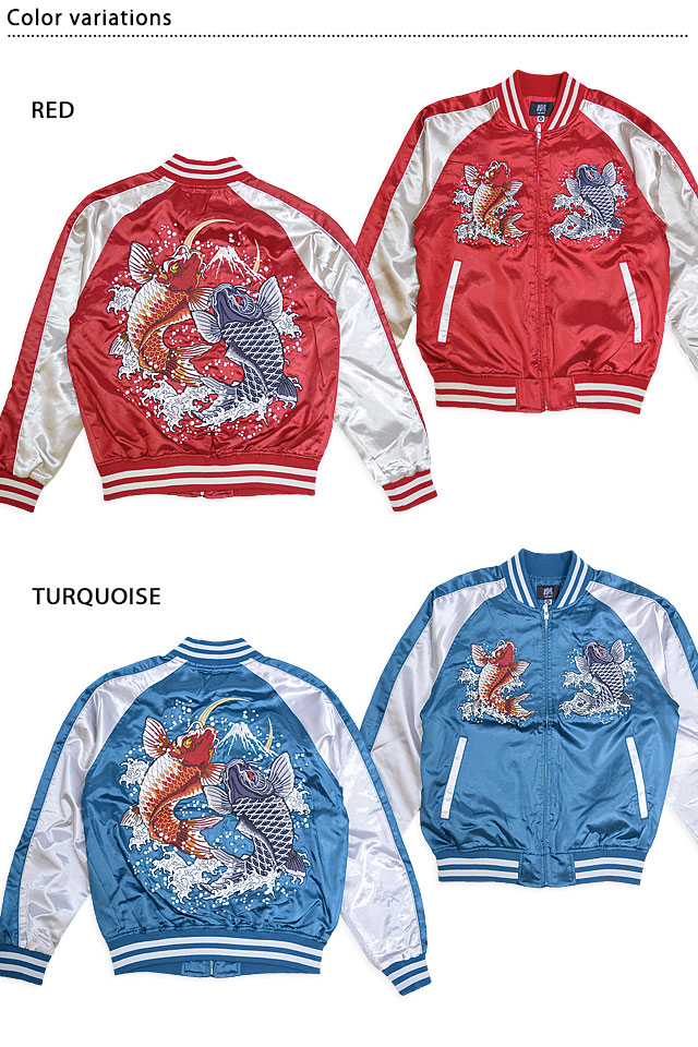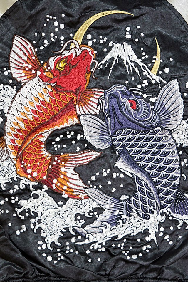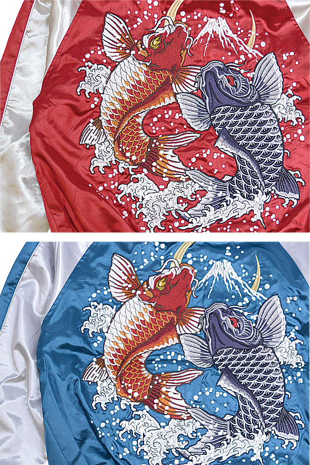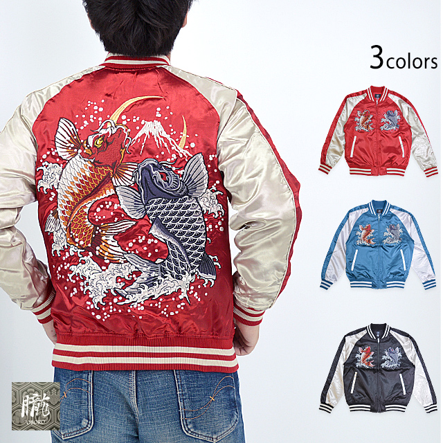 刺繍に定評のある古舗ブランド、華鳥風月の姉妹ブランド「朧」から「鯉サテンスカジャン(9043811)」のご紹介です! カジュアルなサテン生地を使用し、気軽にお楽しみ頂くことの出来るスカジャンを製作しました。 今回モチーフの主役に採用されたのは、迫力のある【鯉】柄。 カラーは選べる3色。それぞれのボディーカラーによって、雰囲気も少しずつ変わります。 1枚持っているだけでずっと使えるアイテムです。 | ||||||||||||||||||||