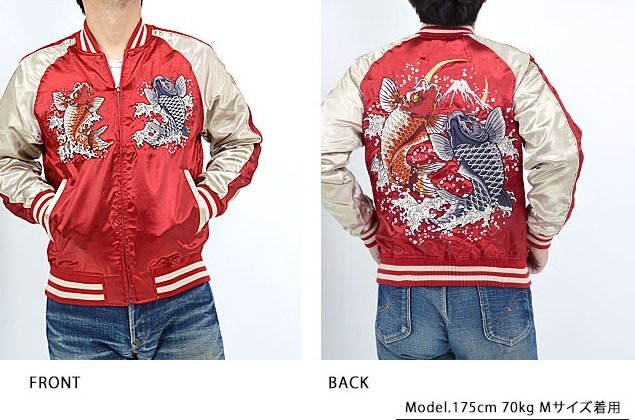 刺繍に定評のある古舗ブランド、華鳥風月の姉妹ブランド「朧」から「鯉サテンスカジャン(9043811)」のご紹介です! カジュアルなサテン生地を使用し、気軽にお楽しみ頂くことの出来るスカジャンを製作しました。 今回モチーフの主役に採用されたのは、迫力のある【鯉】柄。 カラーは選べる3色。それぞれのボディーカラーによって、雰囲気も少しずつ変わります。 1枚持っているだけでずっと使えるアイテムです。 | ||||||||||||||||||||