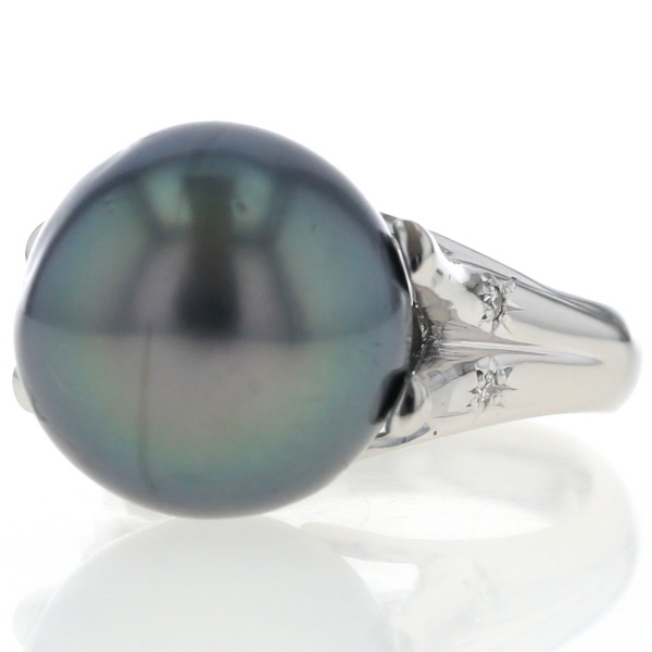 | 商品紹介 | プラチナの地金に、神秘的な輝きを放つ黒蝶真珠をあしらったリングです。 大粒の黒蝶真珠を中心に、その両脇にはダイヤモンドがセッティングされた、エレガントなデザイン。 真珠の存在感とダイヤモンドの煌めきが、手元を上品かつ華やかに演出します。 |