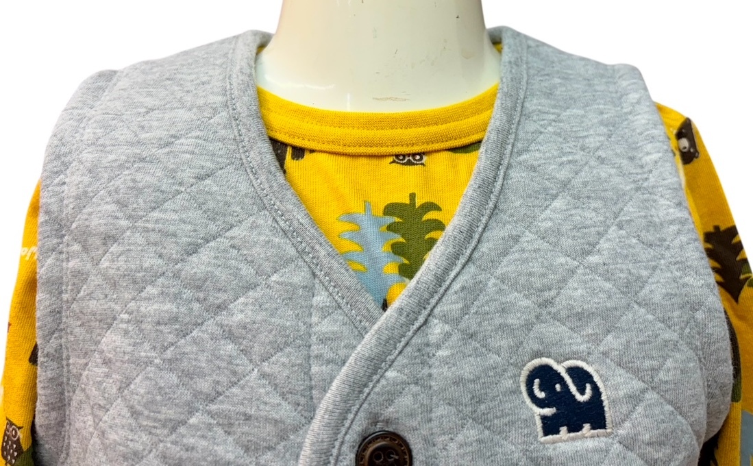 おなじみムージョンブランドのニットキルトベストです。