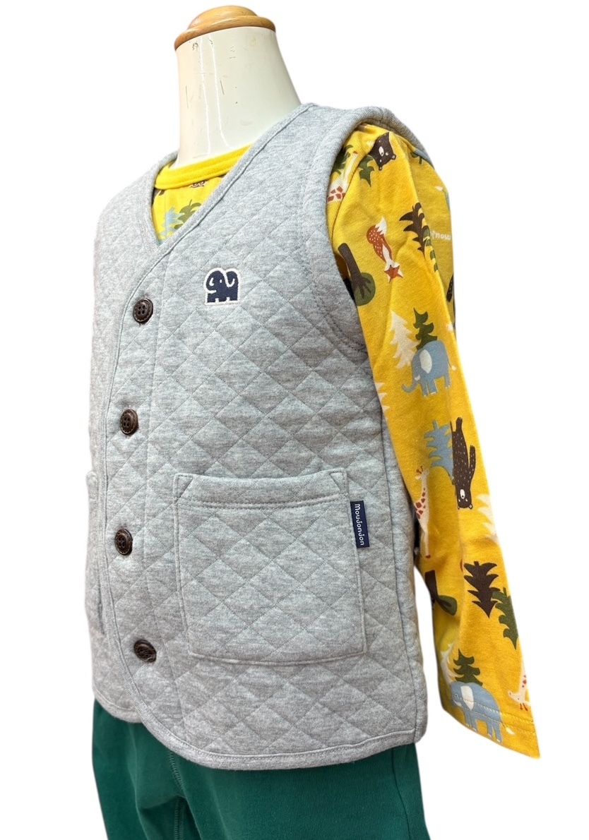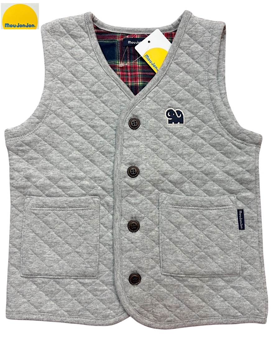 即決 新品タグ付 Moujonjon ムージョンジョン★ニット キルト あったか ベスト★ベビー 90cm 1-2才 ¥1980 人気アイテム