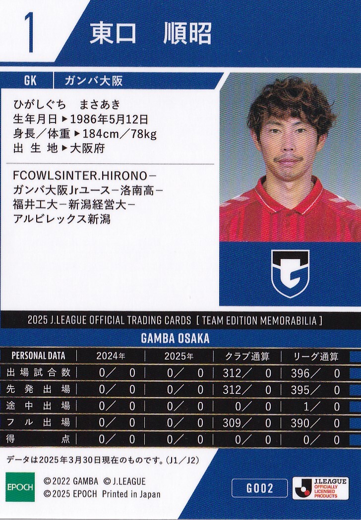 EPOCH 2025 TE ガンバ大阪 GO02 東口順昭 パラレル版