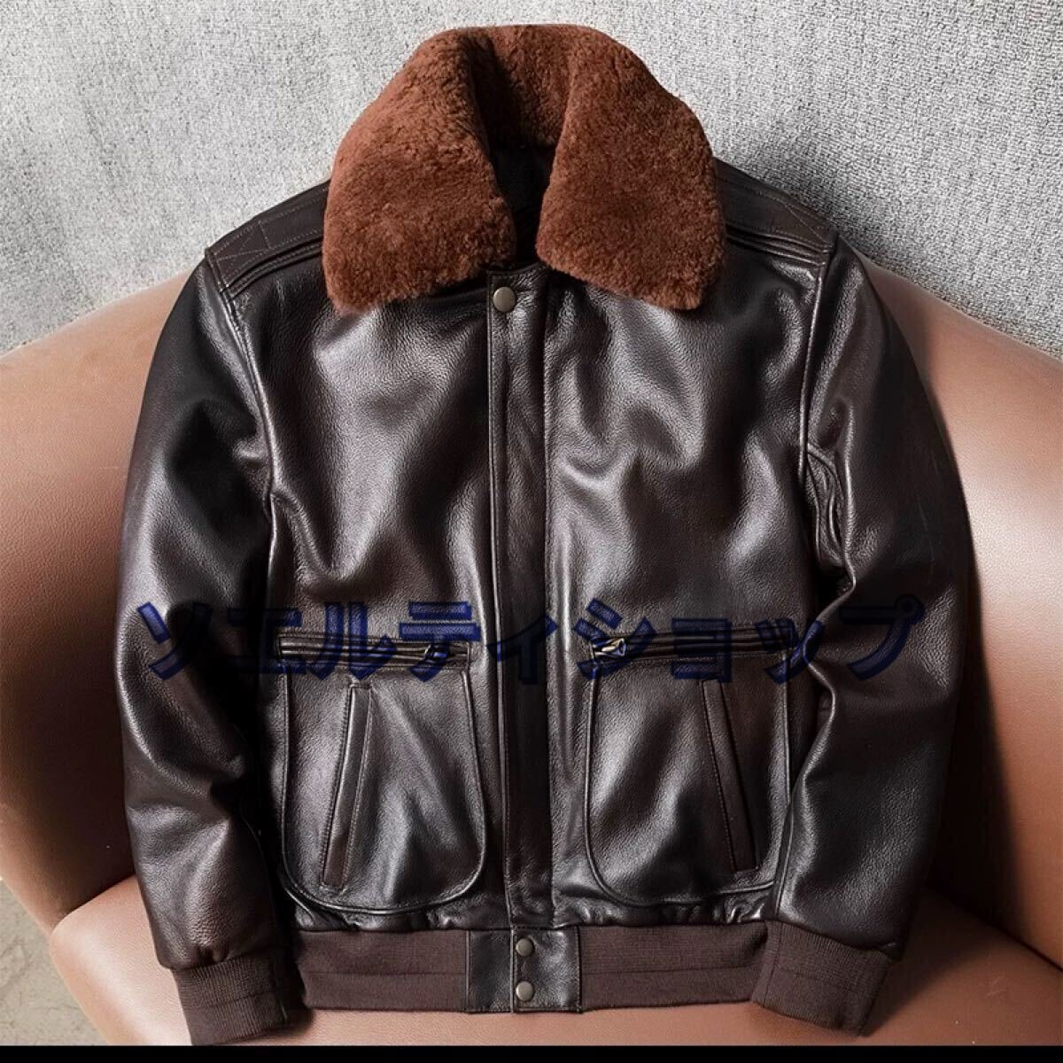 新入荷☆牛革 レザージャケット ウール襟 カウハイド 中綿 フライトジャケット 本革 ライダース メンズファッション 革ジャン S~5XL