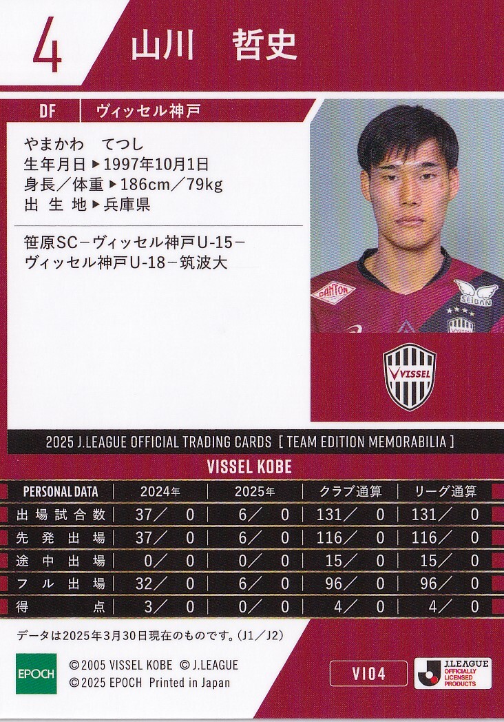 EPOCH 2025 TE ヴィッセル神戸 VI04 山川哲史 パラレル版