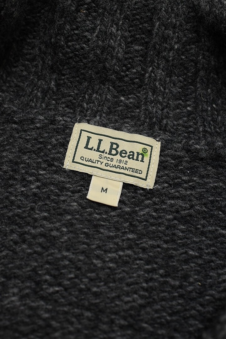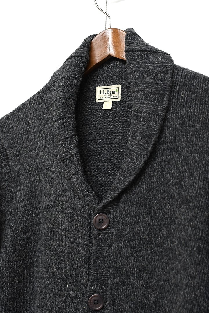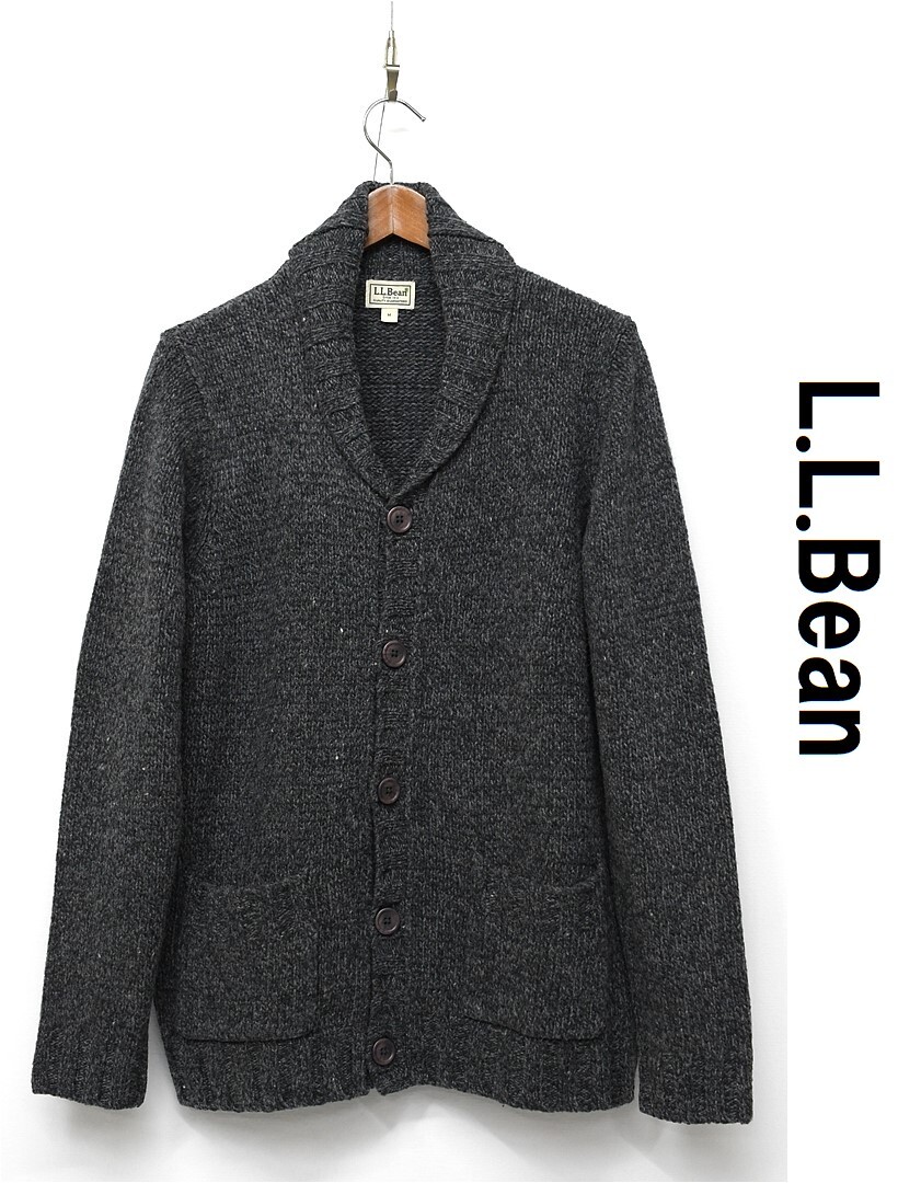 J433/美品 L.L.Bean ニットカーディガン ショールカラー パチポケ ローゲージ ミドルゲージ ラムズウール M グレー