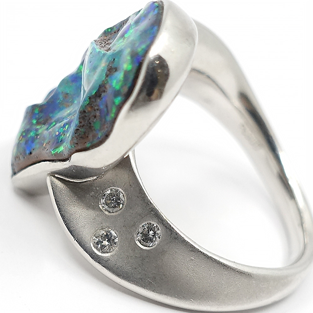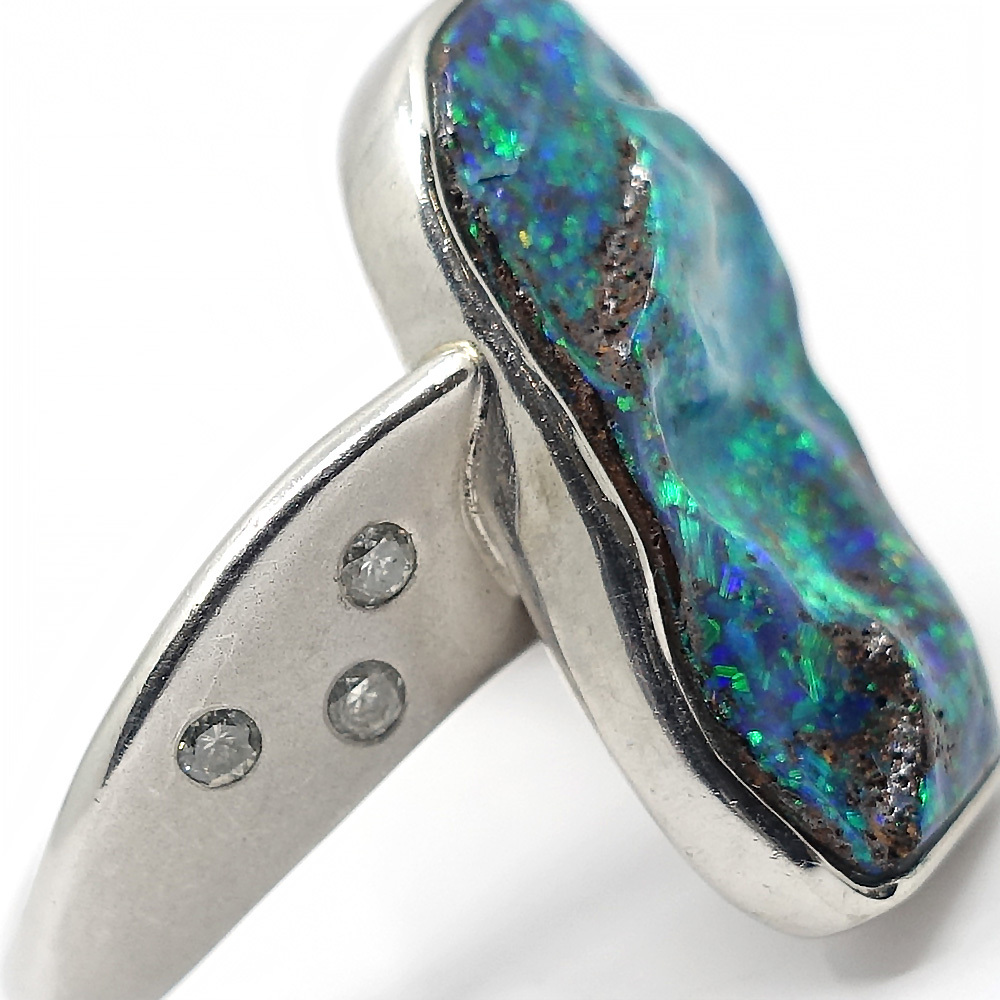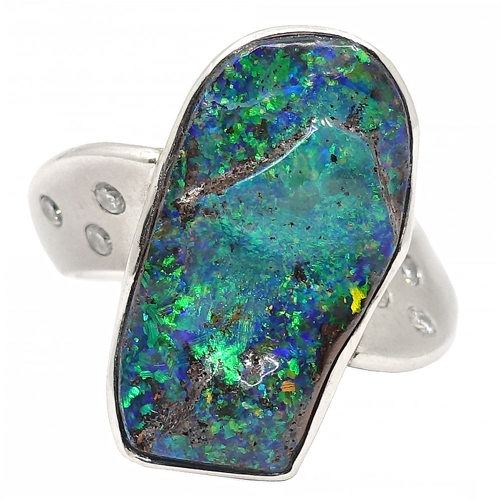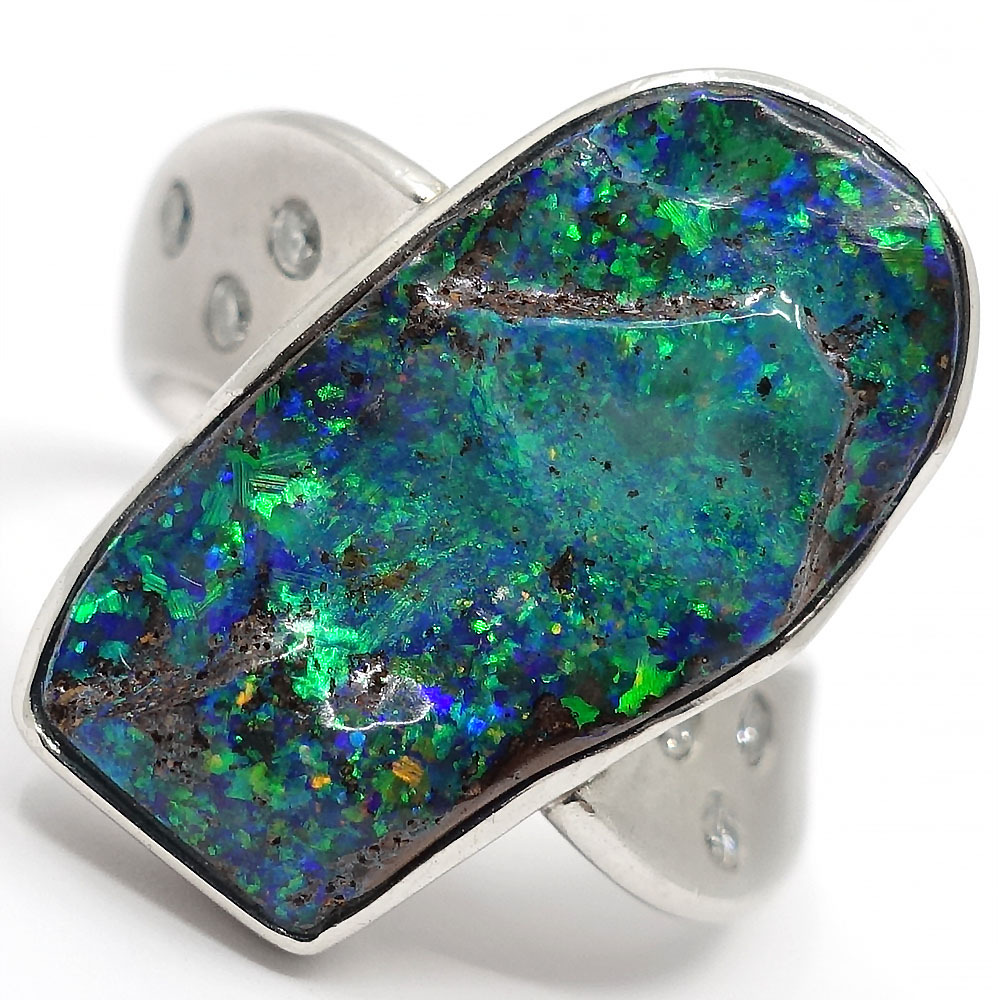 【栄】ジュエリー リング 指輪 ボルダーオパール ダイヤ0.16ct 約10.5号 Pt900 女性 約11.5g アクセサリー 本体のみ