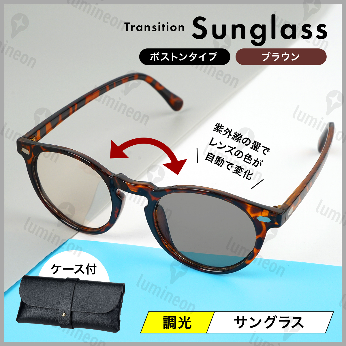 晴れた屋外ではサングラスに変わる調光レンズ搭載のサングラスです。■流行のボストンタイプのサングラス。